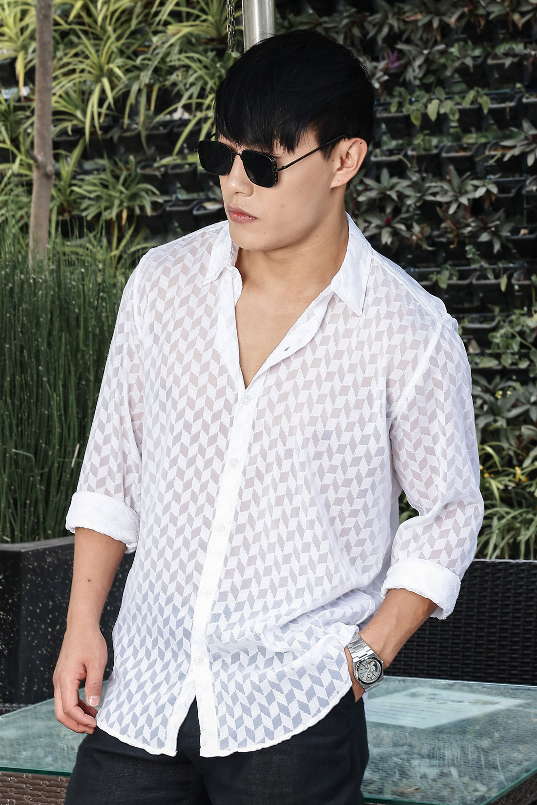 White Classic Semi Sheer Georgette Relaxed Fit Shirt 2.0