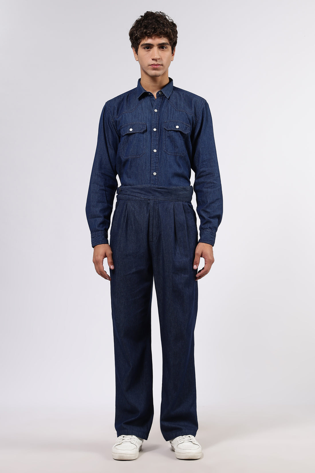 Co-Ord Set Indigo Blue Premium Denim Gurkha Pant & Full Shirt Relaxed Fit