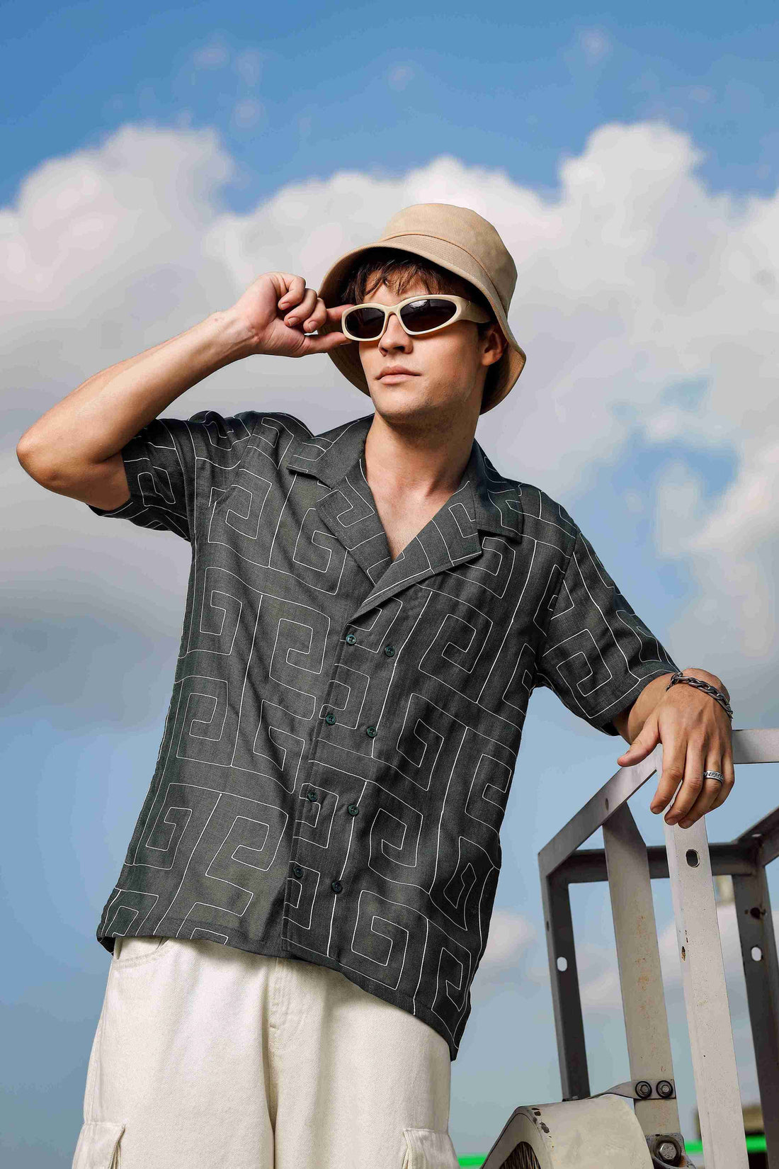 Abstract Tile Print Cuban Collar Oversized Resort Shirt