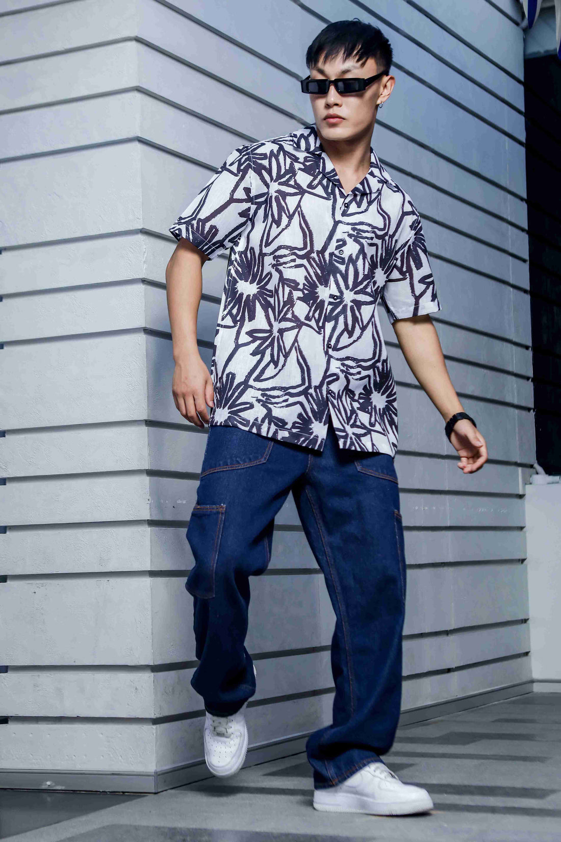 Abstract Floral Print Linen Blend Cuban Collar Oversized Resort Shirt