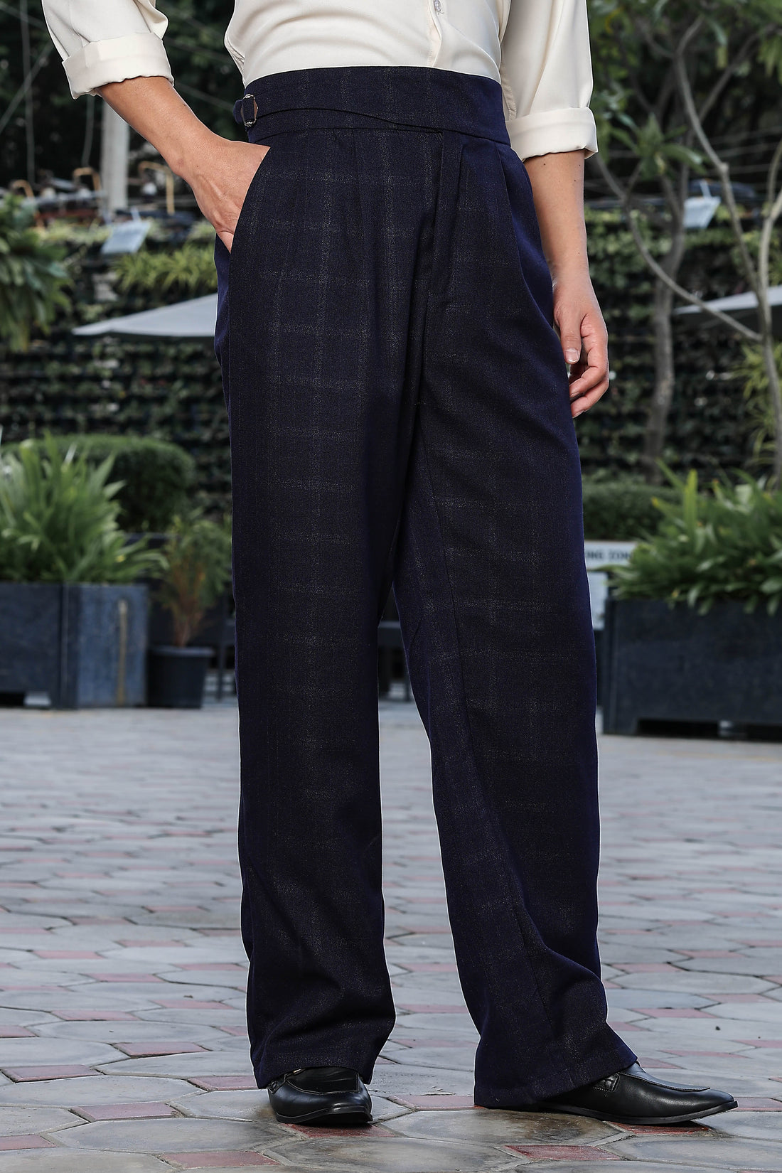 -Gurkha Waistband Design-Fabric:Premium PolyTweed-Double Pleated Front Detailing -Relaxed Fit with Wide Tapered Legs -Versatile Styling-Mid-Rise Waist -Color:Midnight Blue/Navy...