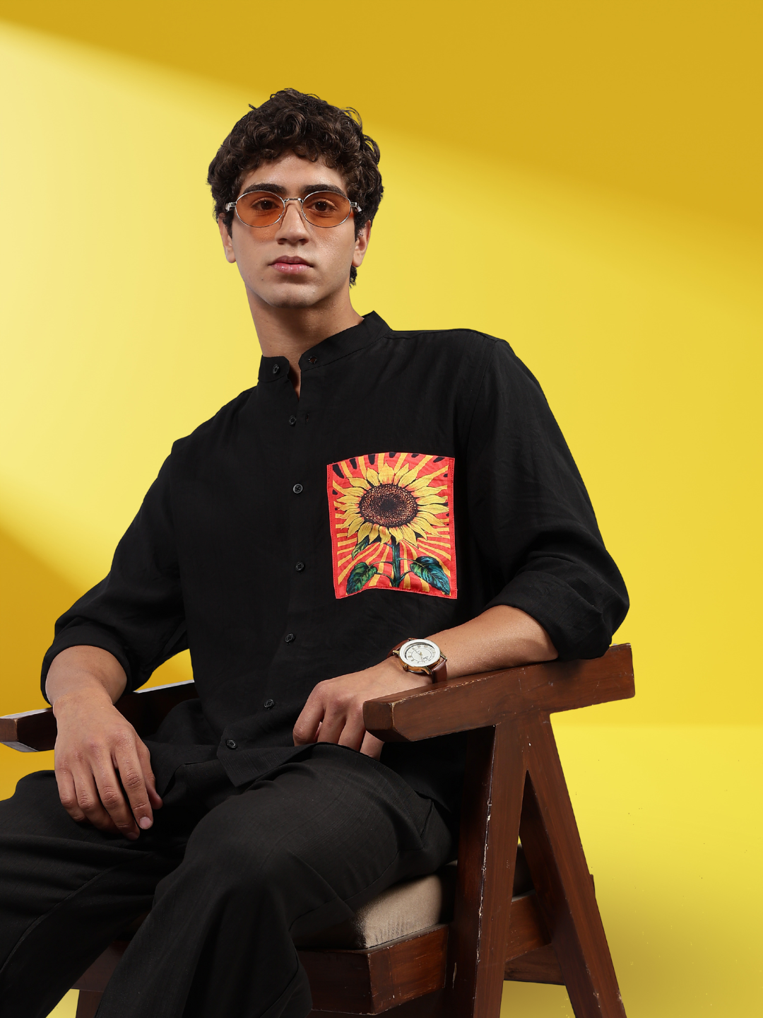 Black Mandarin Collar Pure Viscose Relaxed Fit Shirt 2.0