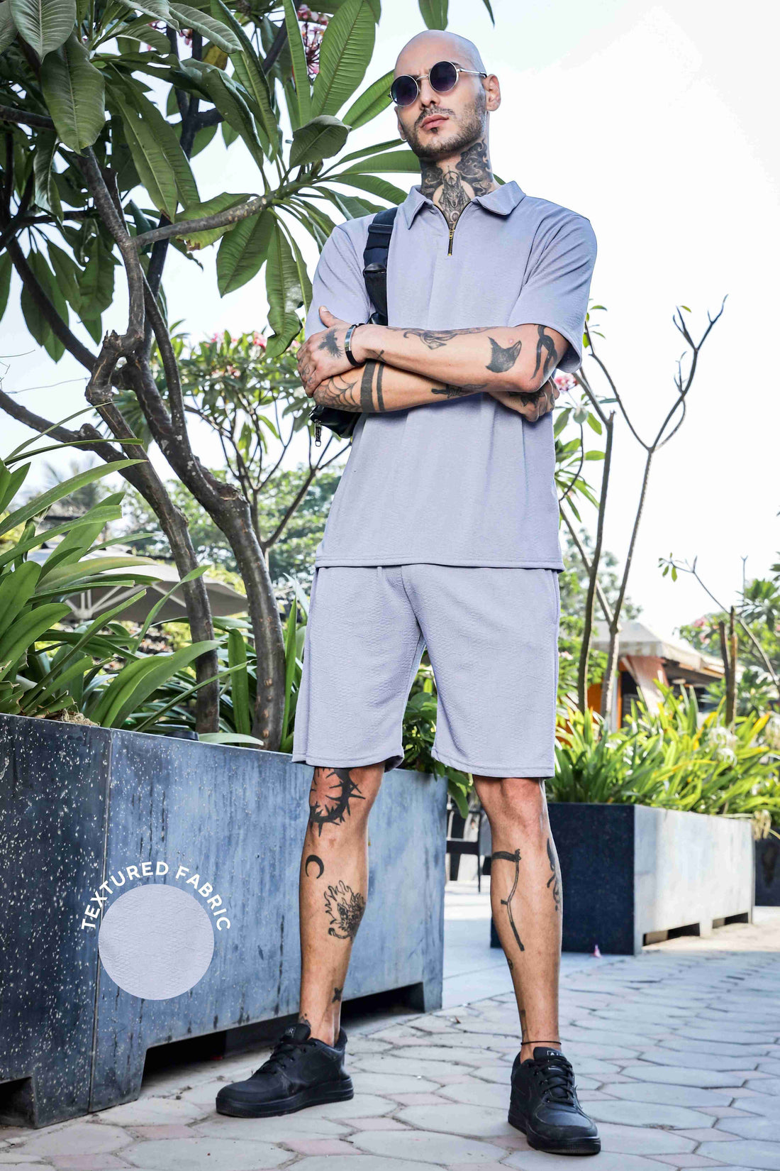 Unisex Grey Textured Oversized Polo Neck Tee & Shorts Co-ord Set