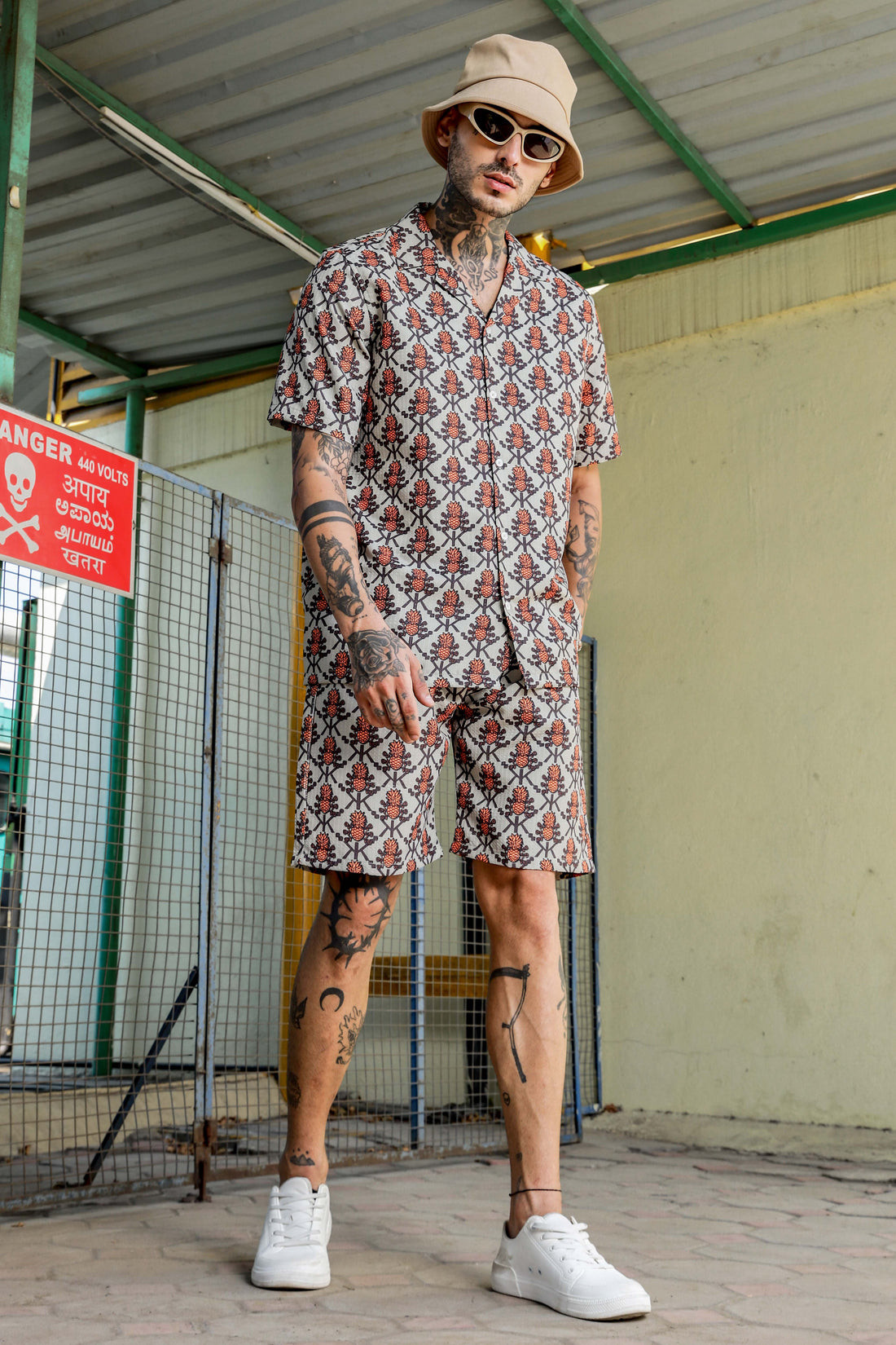 Unisex Beige Tropical Abstract Printed Co-ord Set