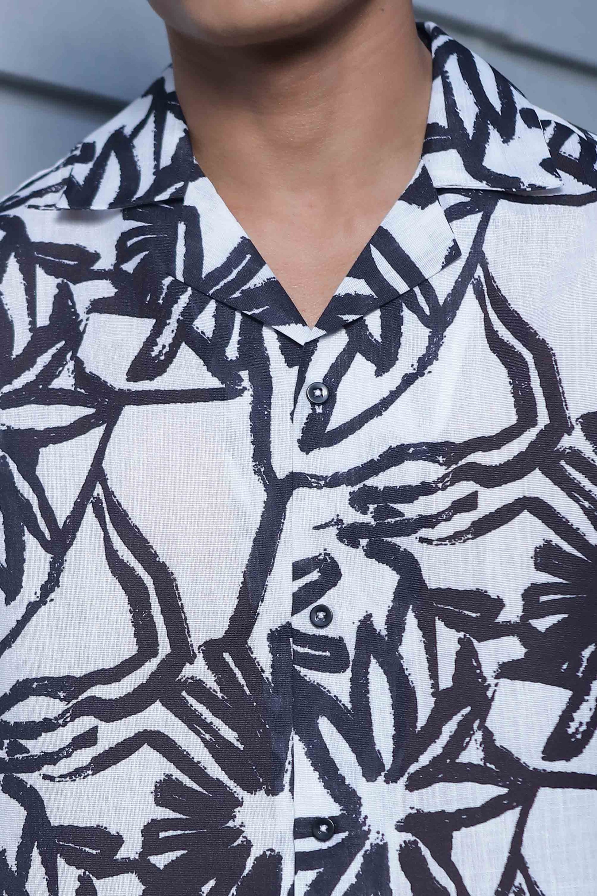 Abstract Floral Print Linen Blend Cuban Collar Oversized Resort Shirt