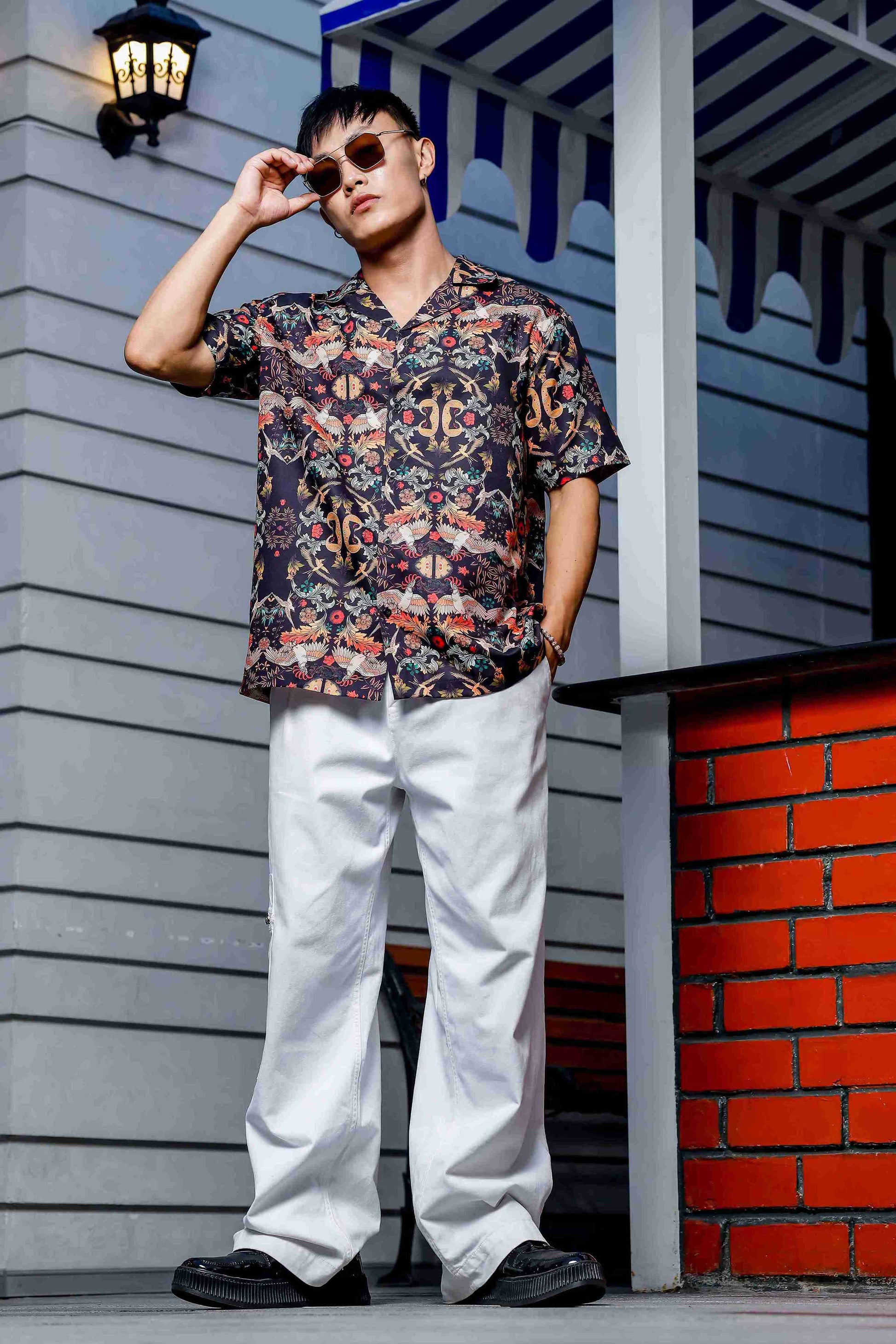 Relaxed Fit Black Floral Printed Cuban Collar Resort Shirt