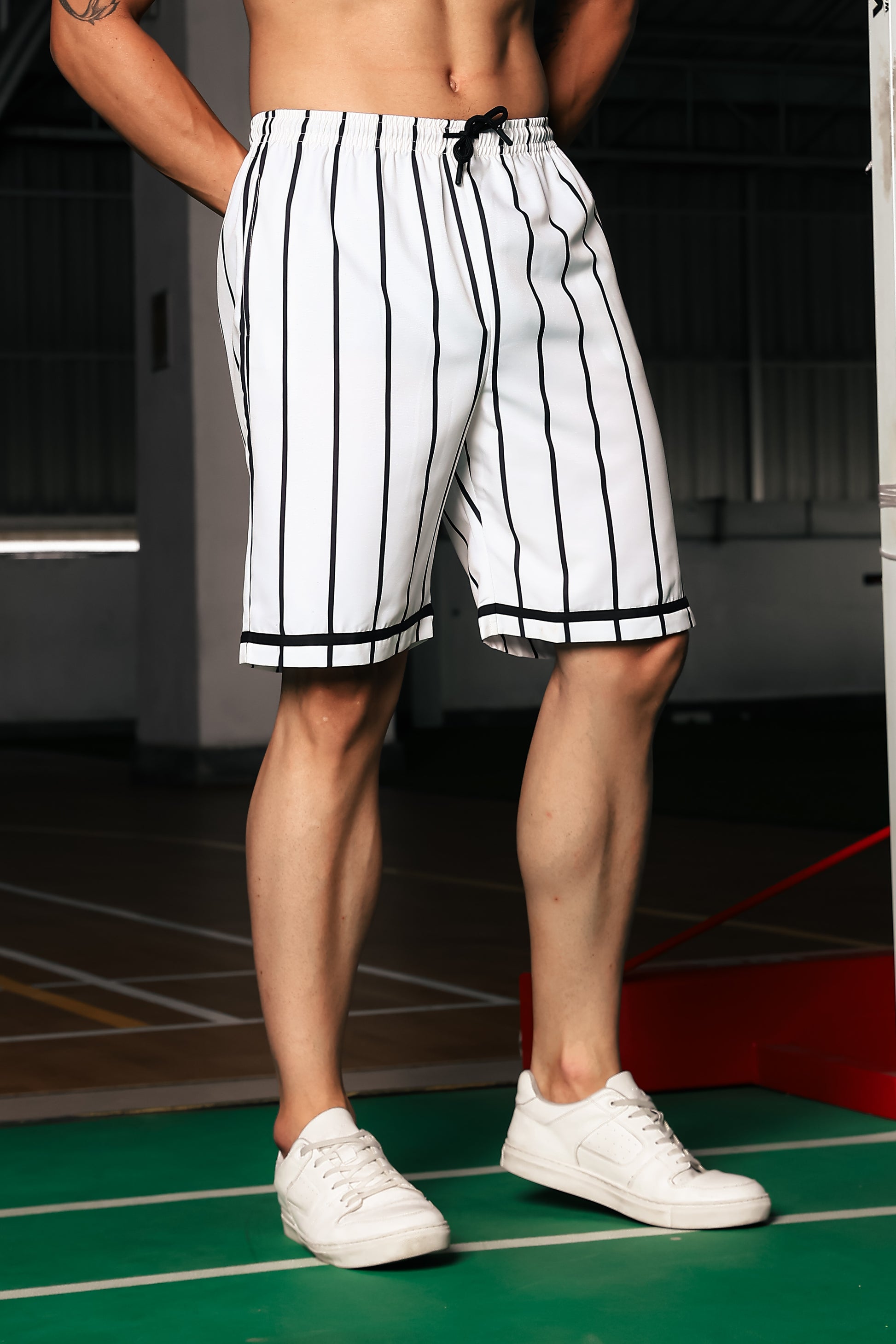 Black & White Stripe Printed Oversized Baseball Resort Shirt & Shorts Co-ord Set