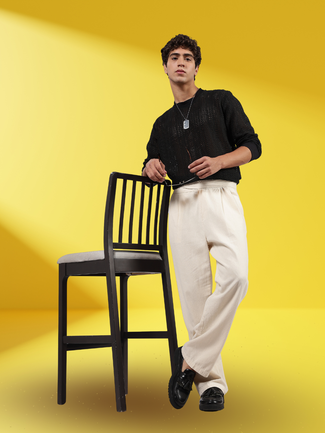 Black Oversized Fit Premium Cotton Crochet Pullover