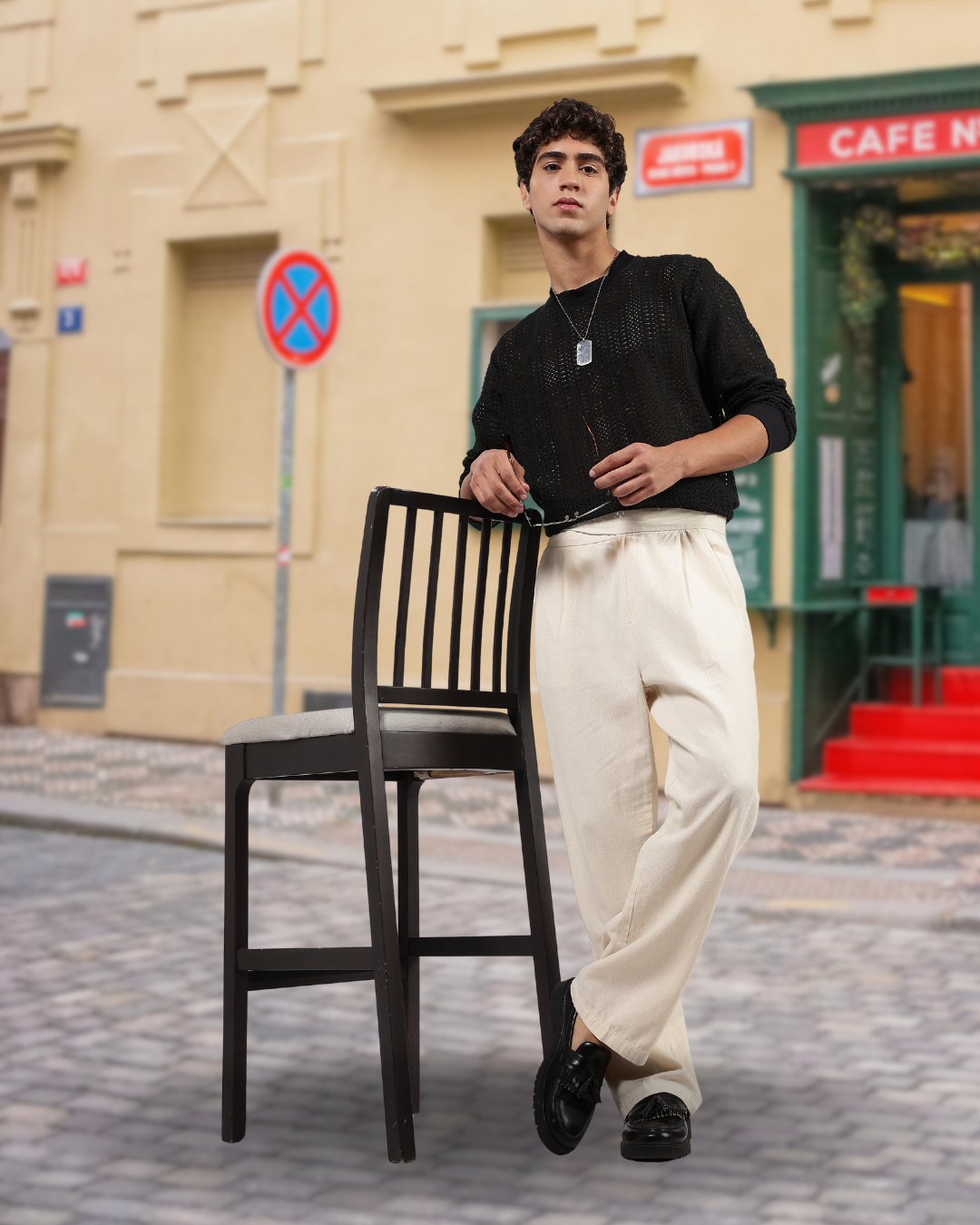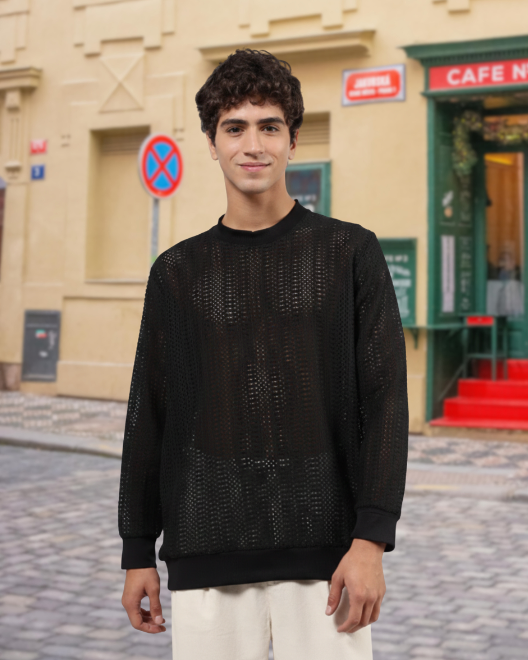 Black Oversized Fit Premium Cotton Crochet T-Shirt