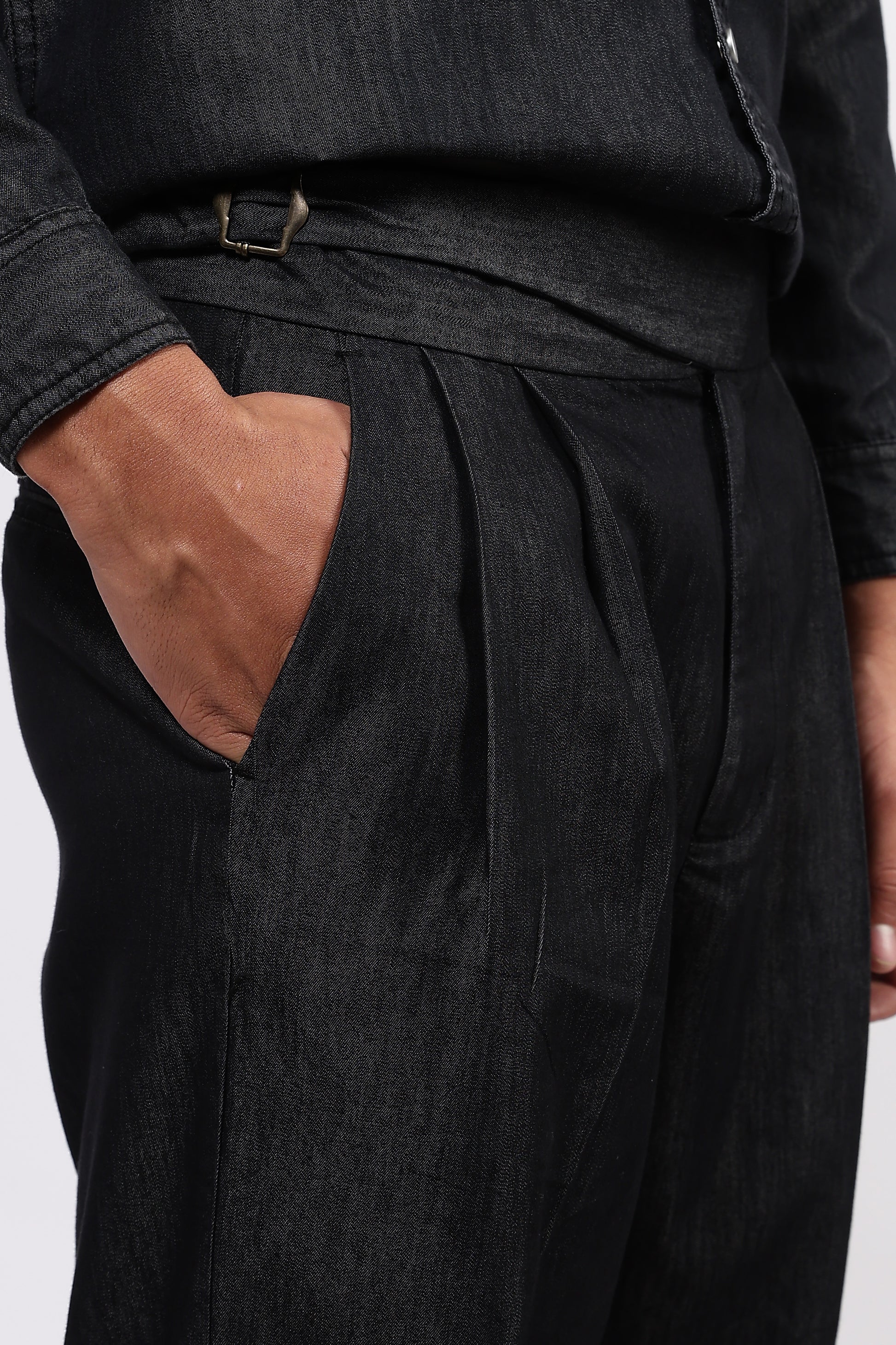 Co-ord Set Black Premium Denim Gurkha Pant & Full Shirt Relaxed Fit