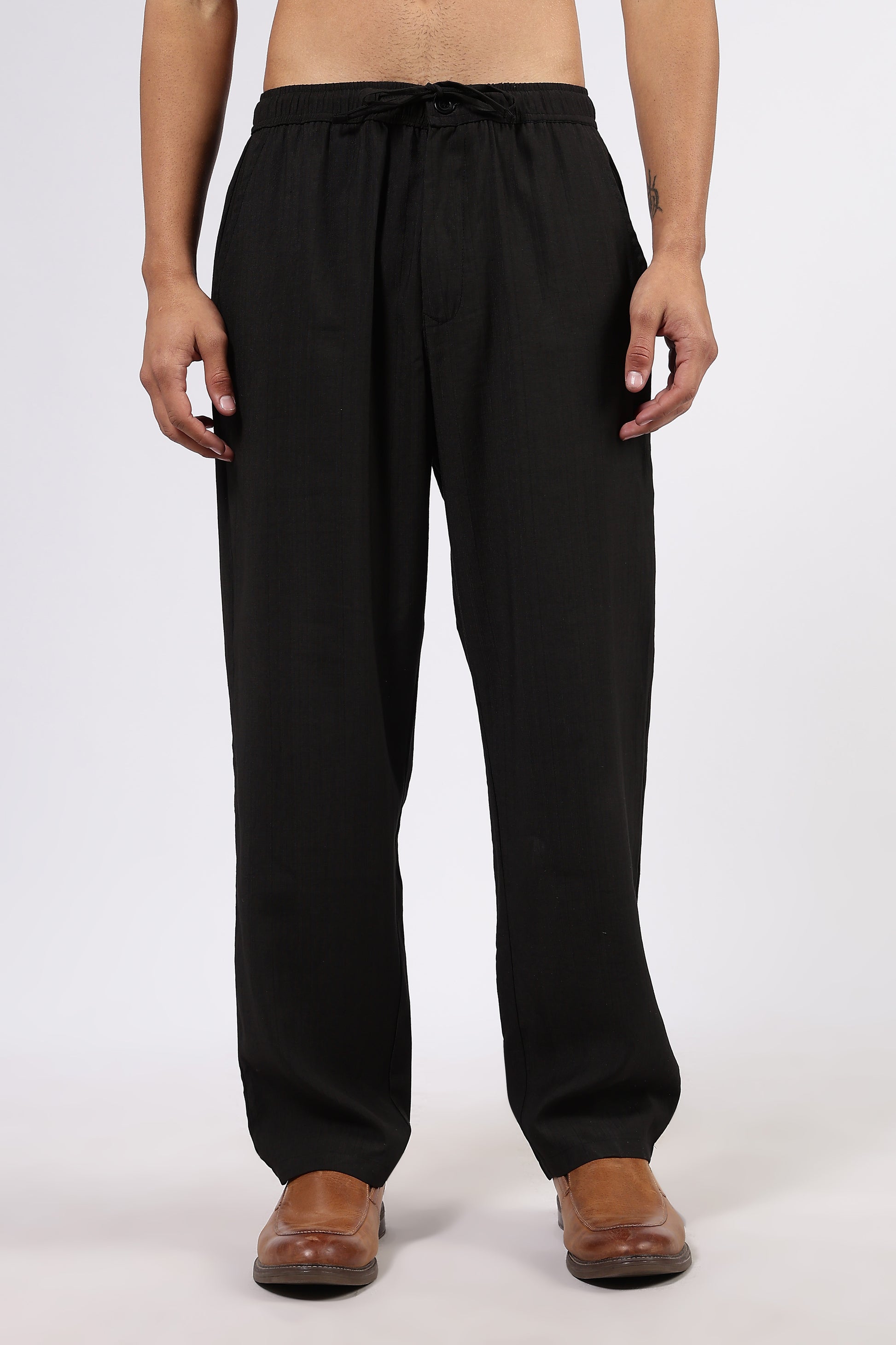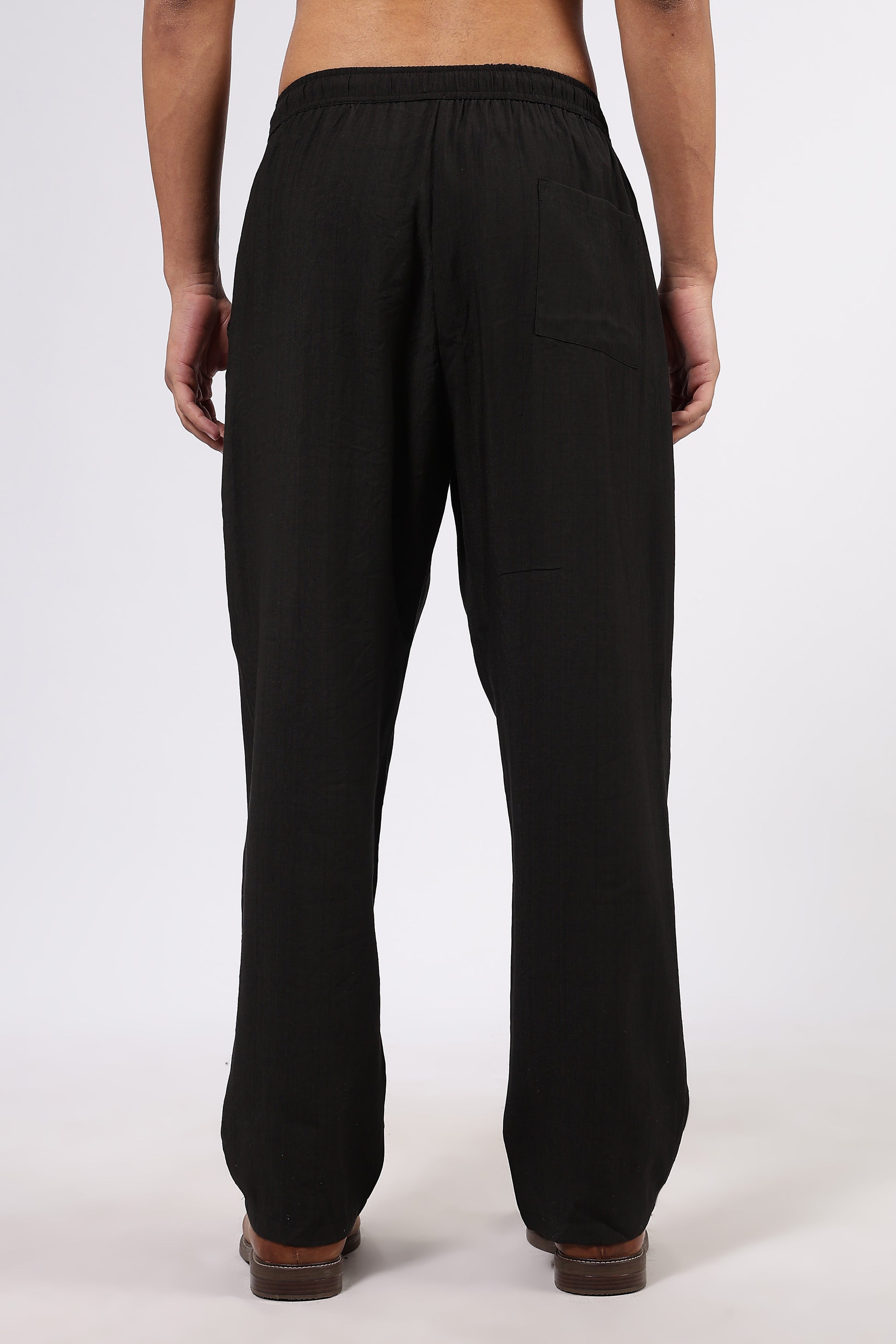 Black Solid Premium Viscose Mid-Rise All Day Relaxed Fit Pants