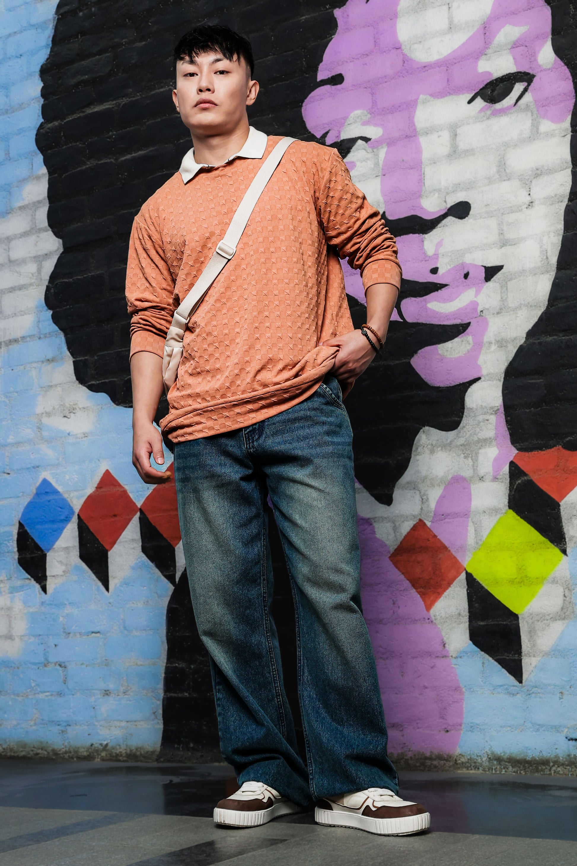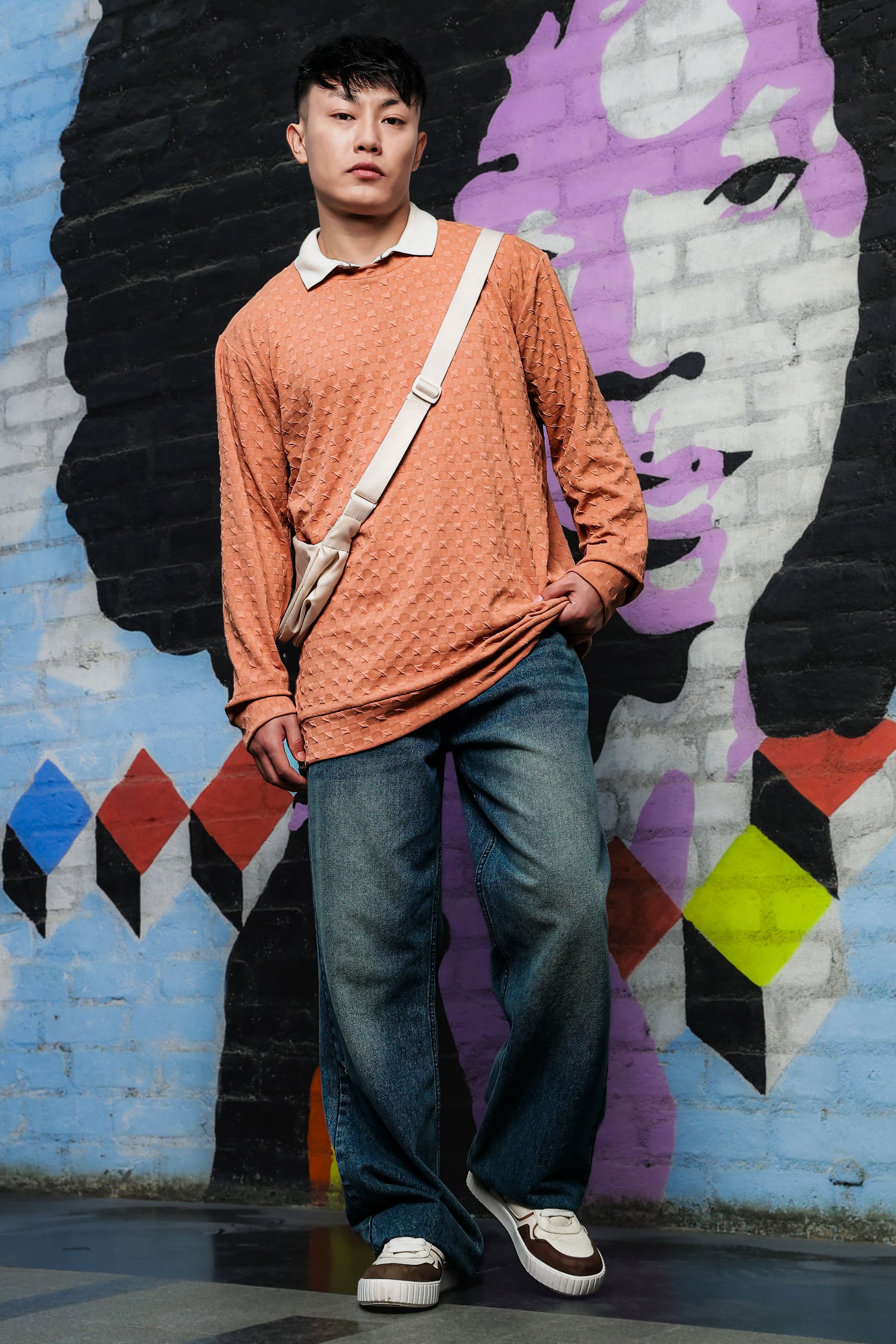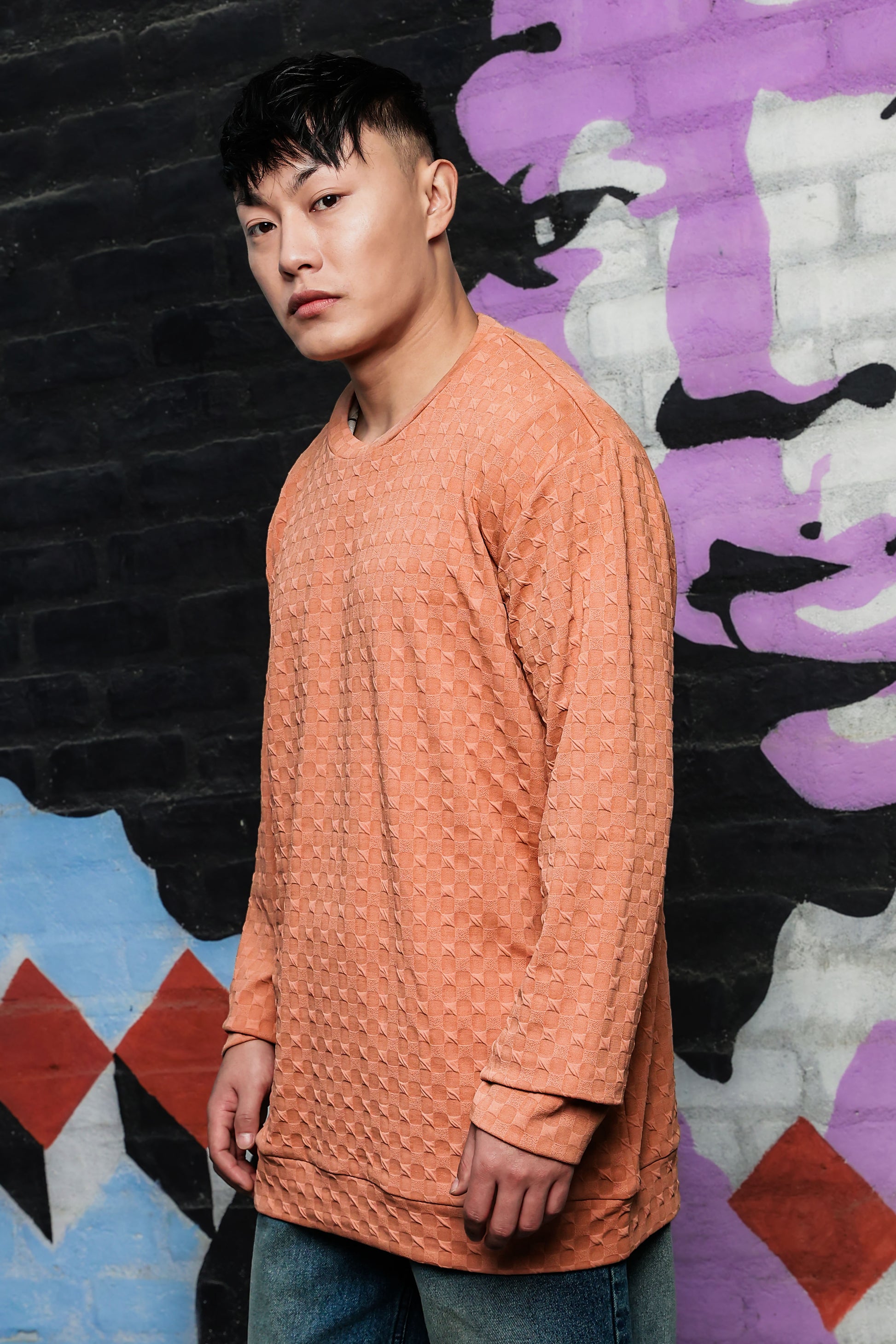 Brown Solid Textured Knitted Drop-Shoulder Relaxed Fit Pullover Sweatshirt