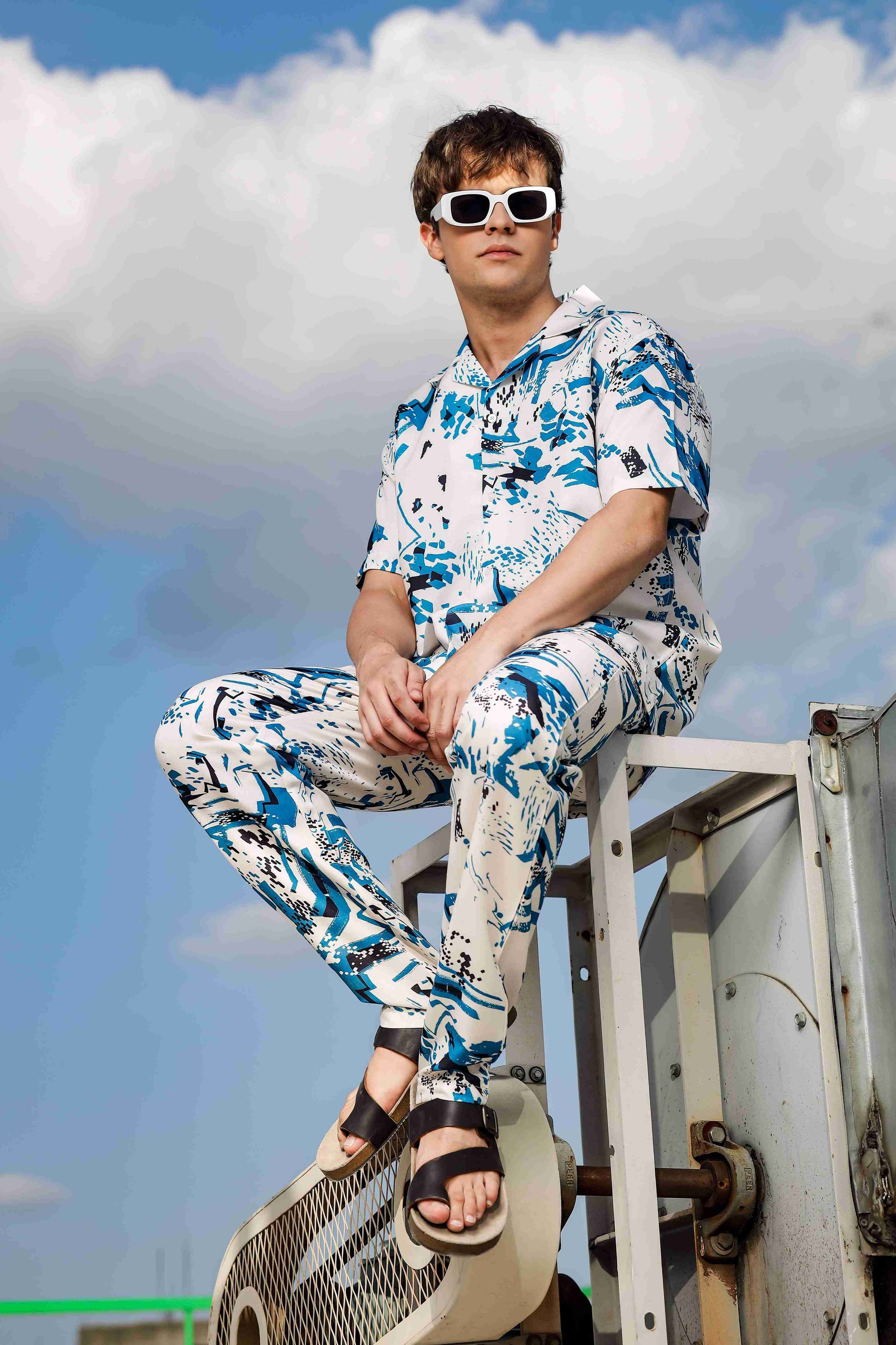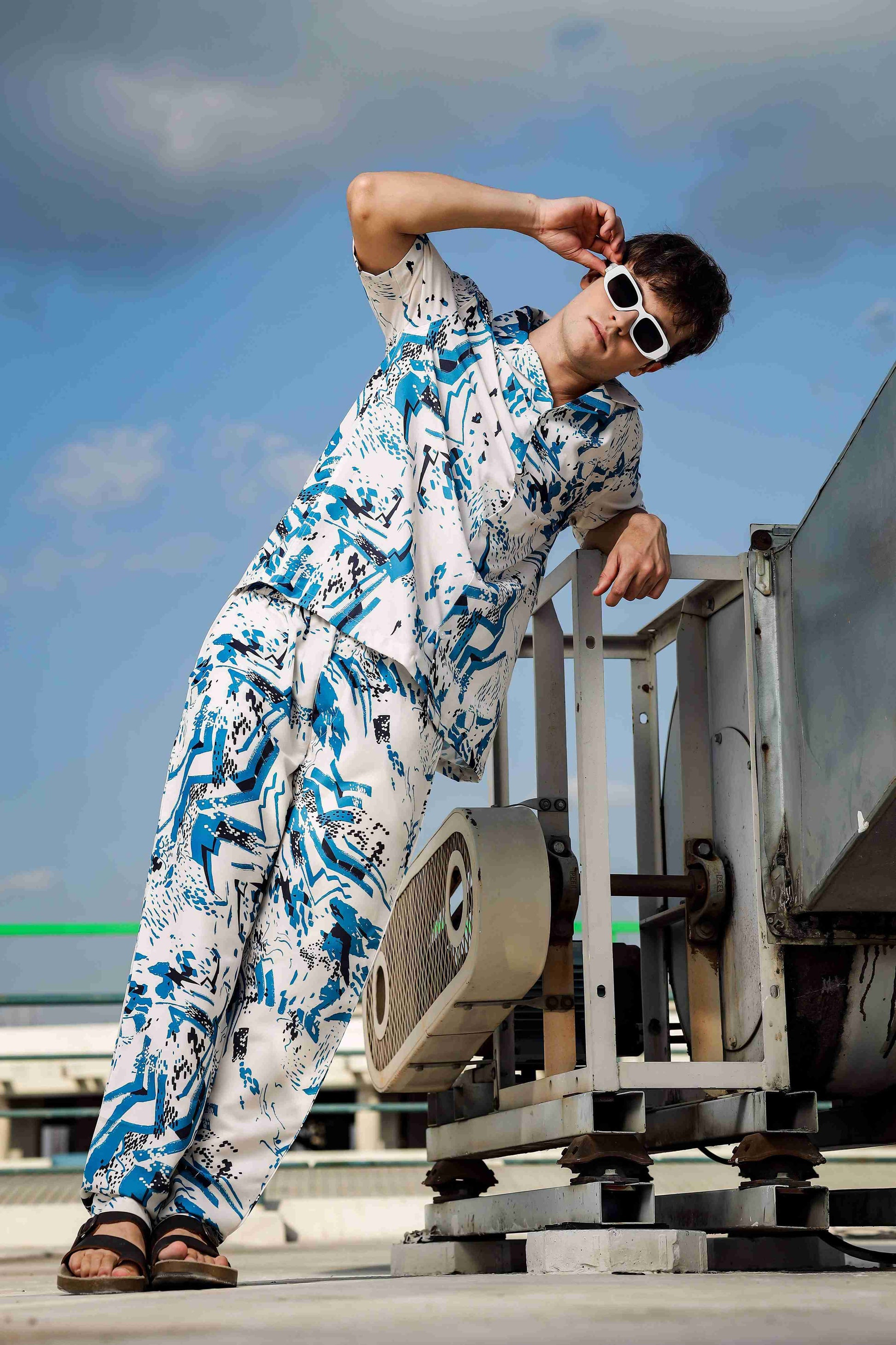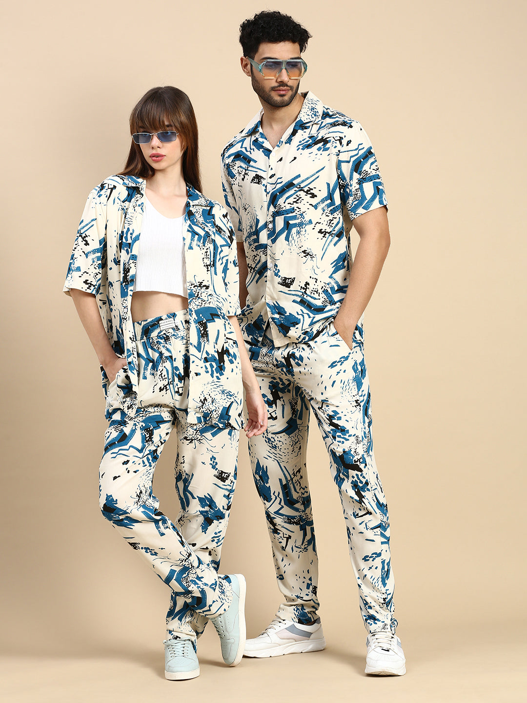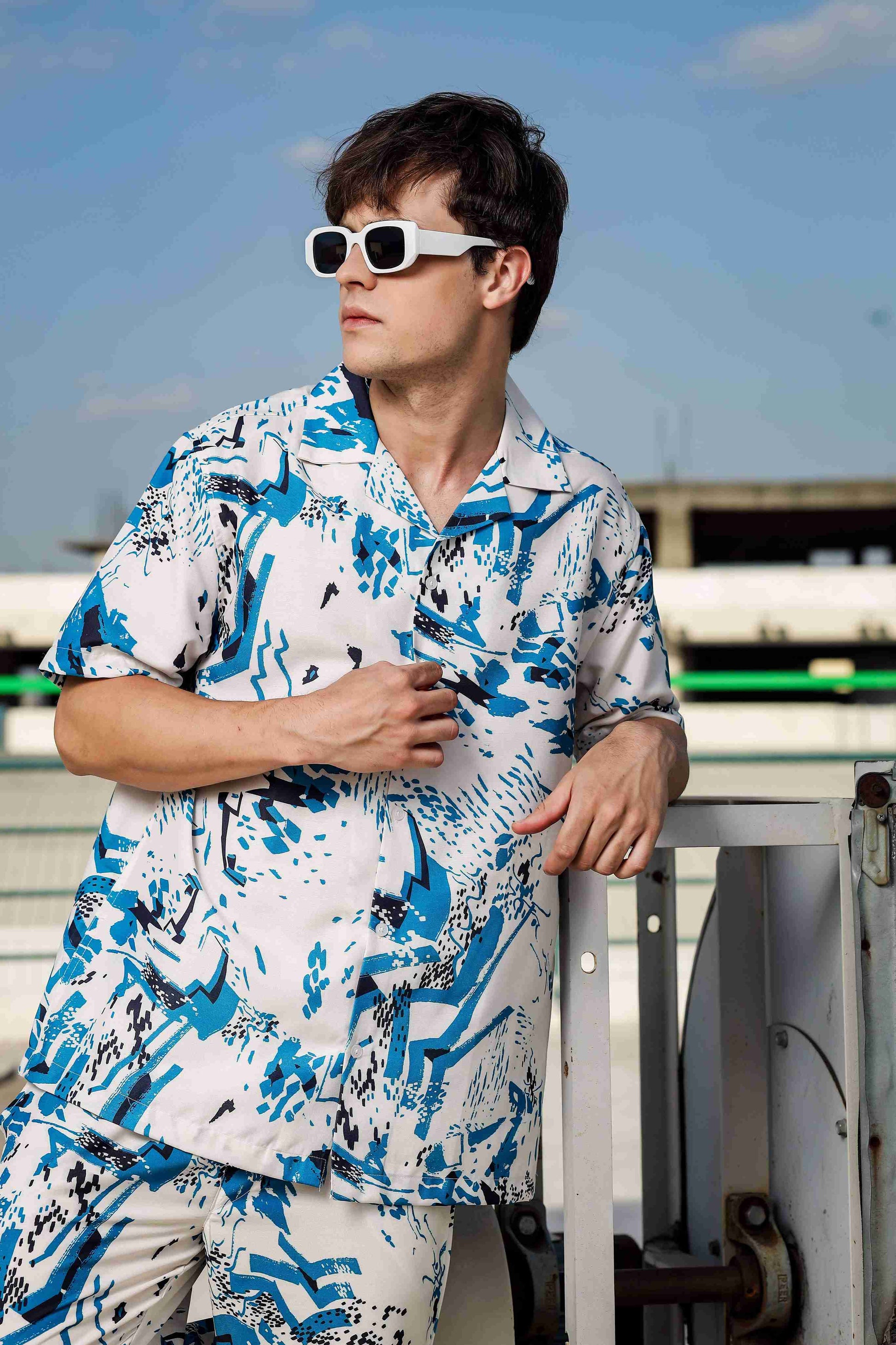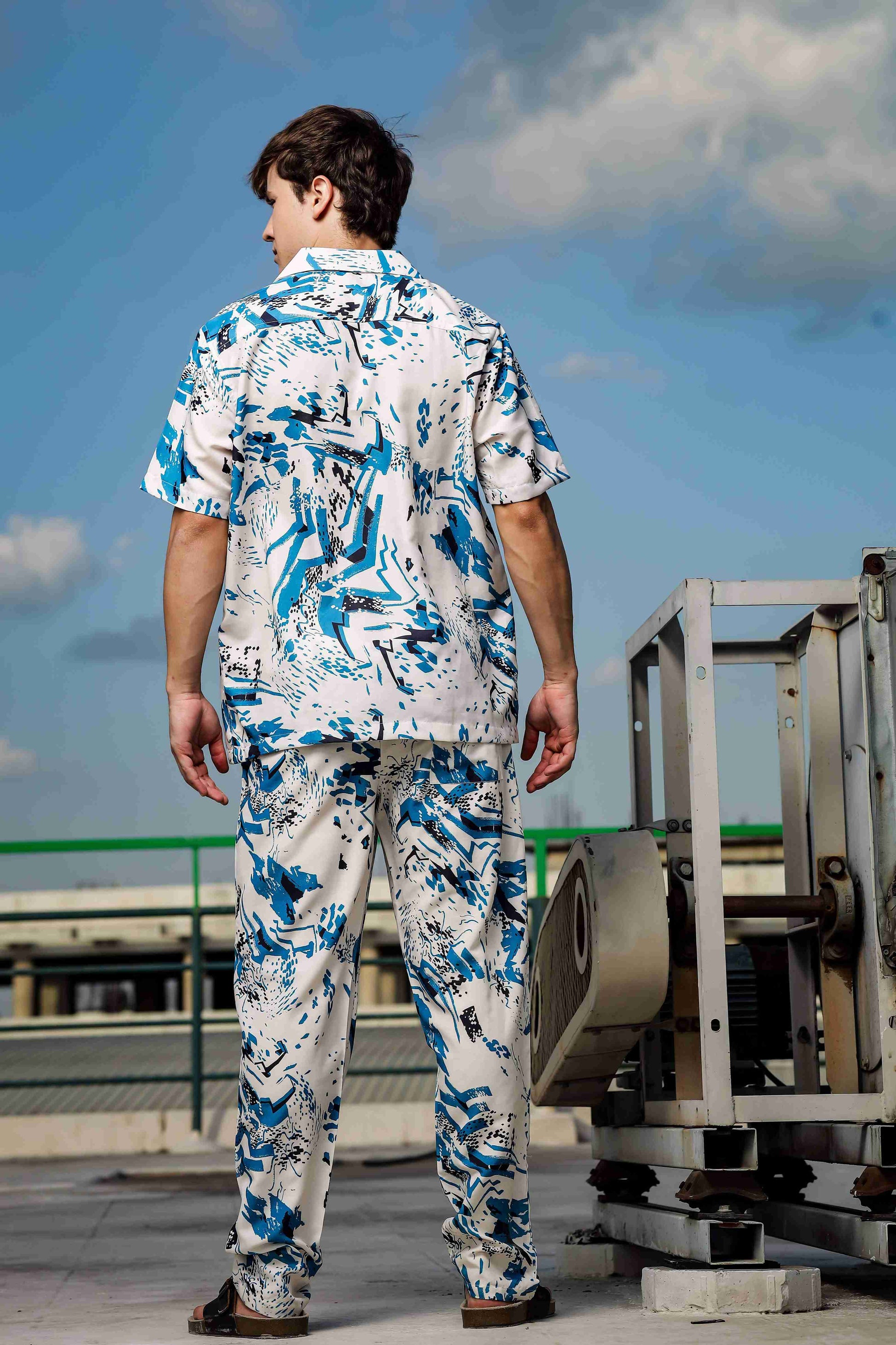 Off White Relaxed Fit Cuban Collar Shirt & All Day Pants Abstract Printed Co-ord Set