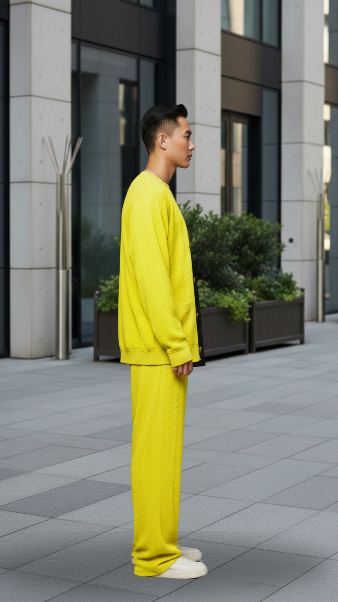 Neon Green Textured Oversized Heavy Duty Knit Cardigan &Trackpant Co-ord Set