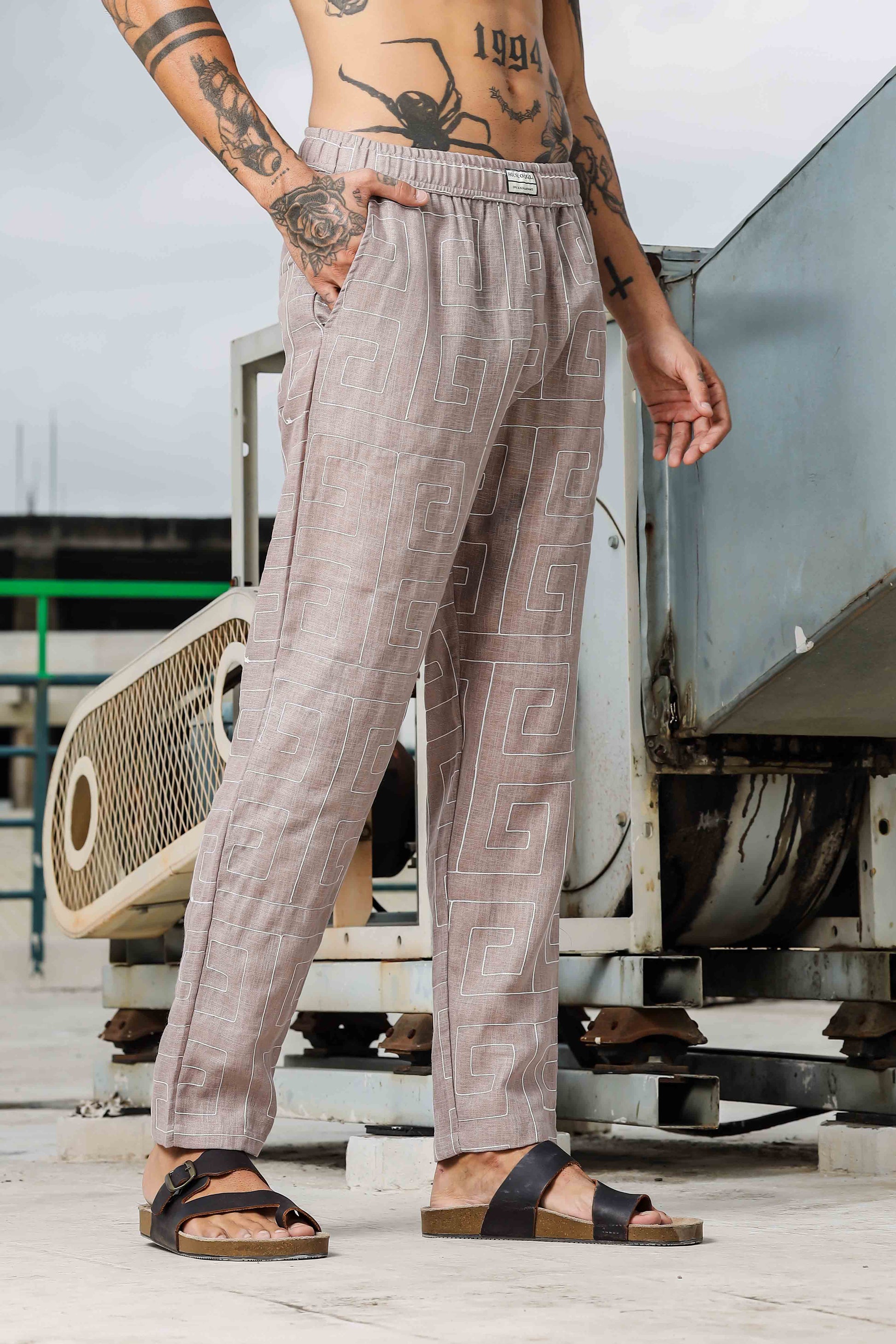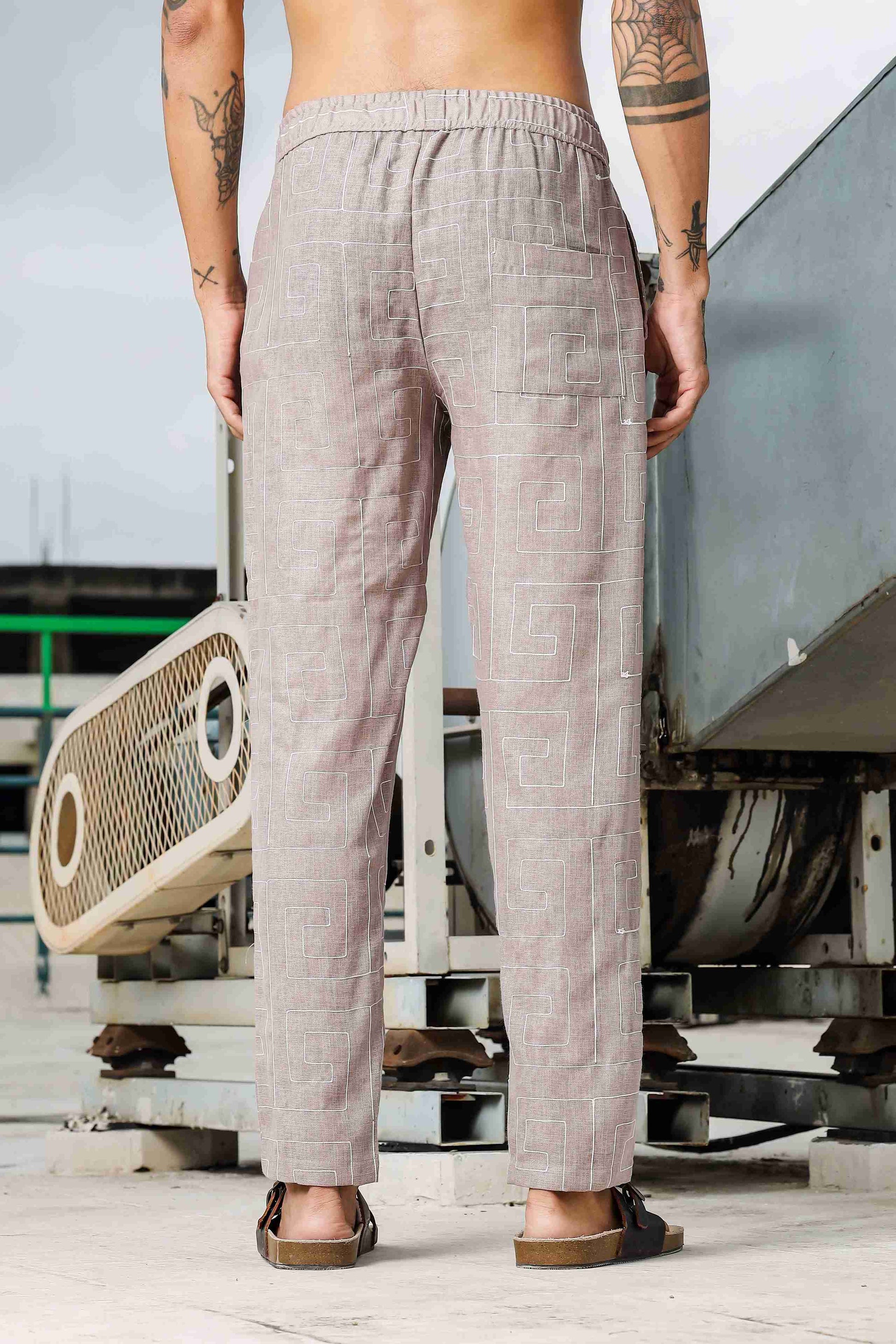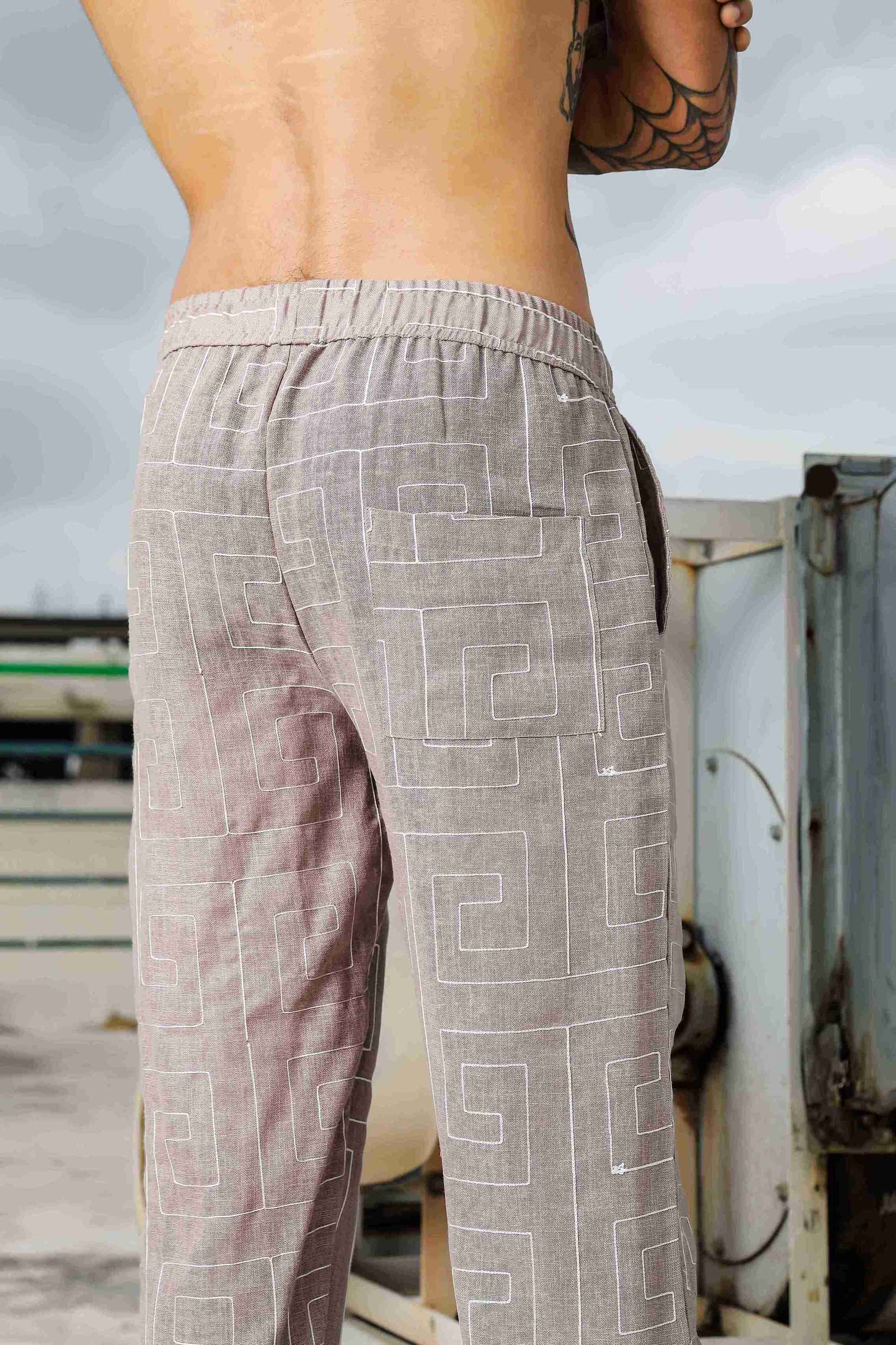 This must have coord set consists of a Relaxed half sleeve shirt with lounge pants.Relaxed-fit shirt in a patterned Linen Embroidered weave with a resort collar, Lapel front, short sleeves and a straight-cut hem. Beige Linen Embroidered mid-rise lounge pants, has an inner elasticated waistband with drawstring closure and two slant pockets on side and one pocket at the back