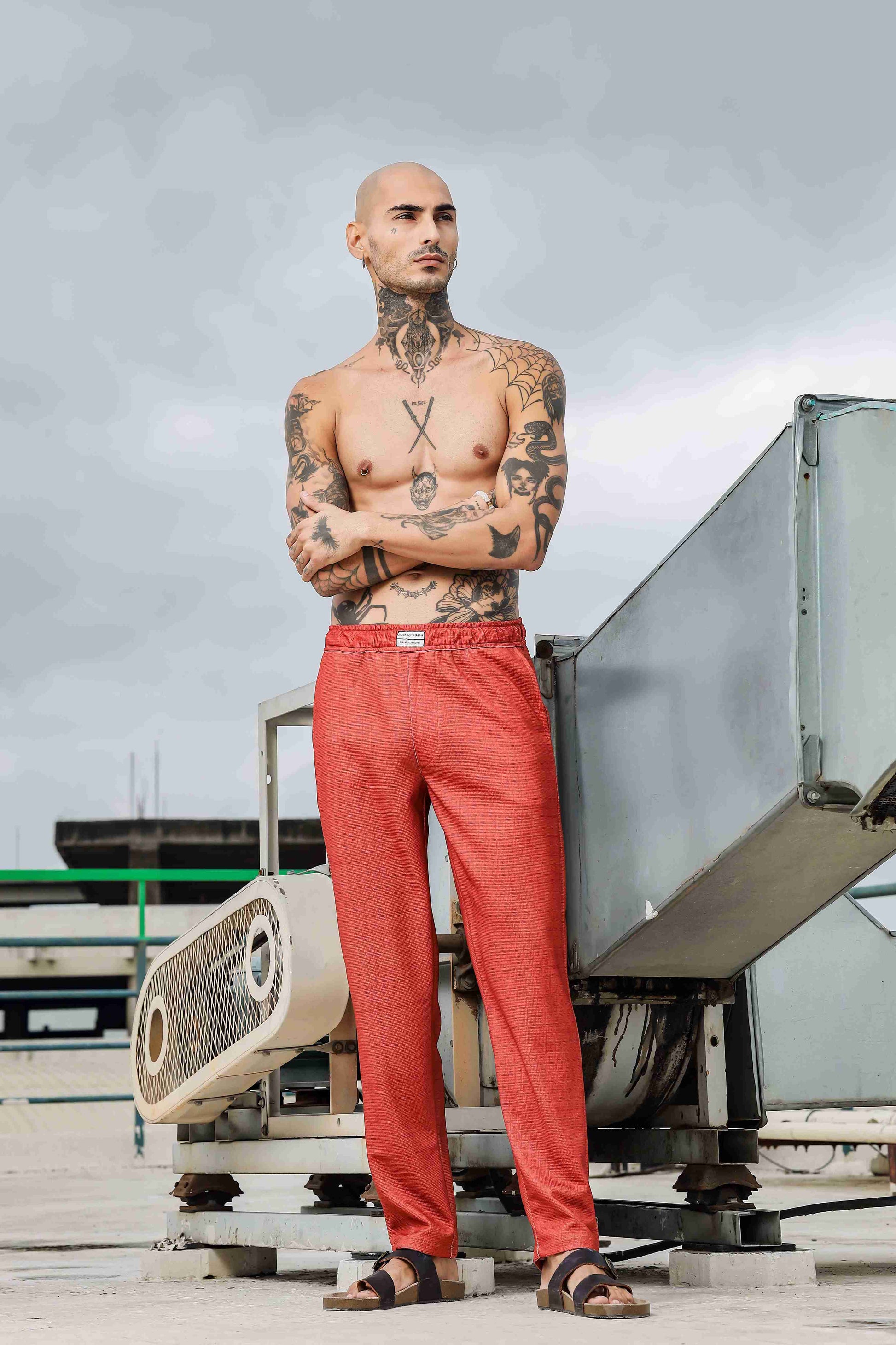 This must have coord set consists of a Relaxed full sleeve shirt with lounge pants.Relaxed-fit shirt in a patterned textured weave with a button down collar, Long sleeves and a straight-cut hem. Brown textured mid-rise lounge pants, has an inner elasticated waistband with drawstring closure and two slant pockets on side and one pocket at the back