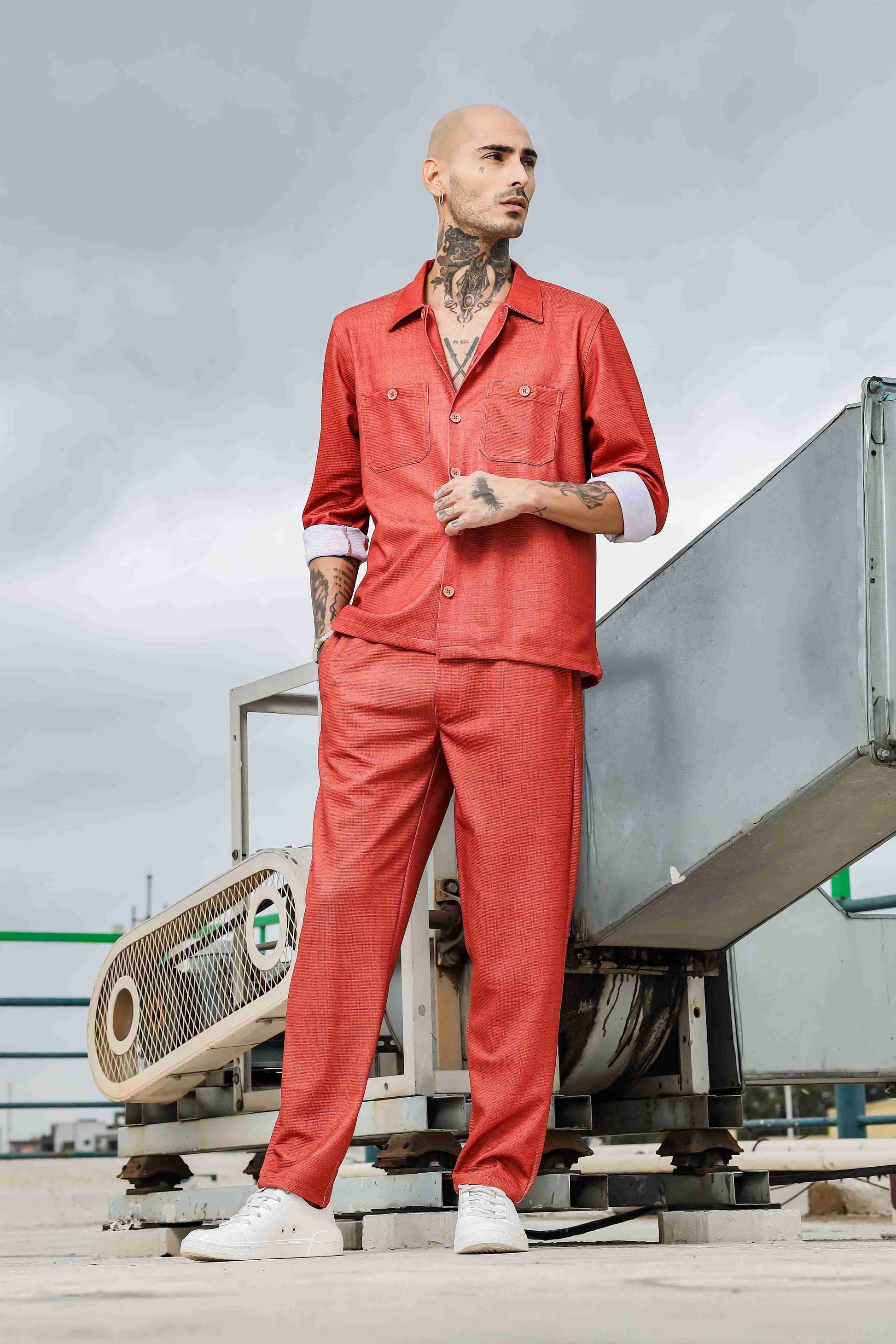 Rust Oversized Textured Fabric Shacket Shirt & All Day Pants Co-ord Set