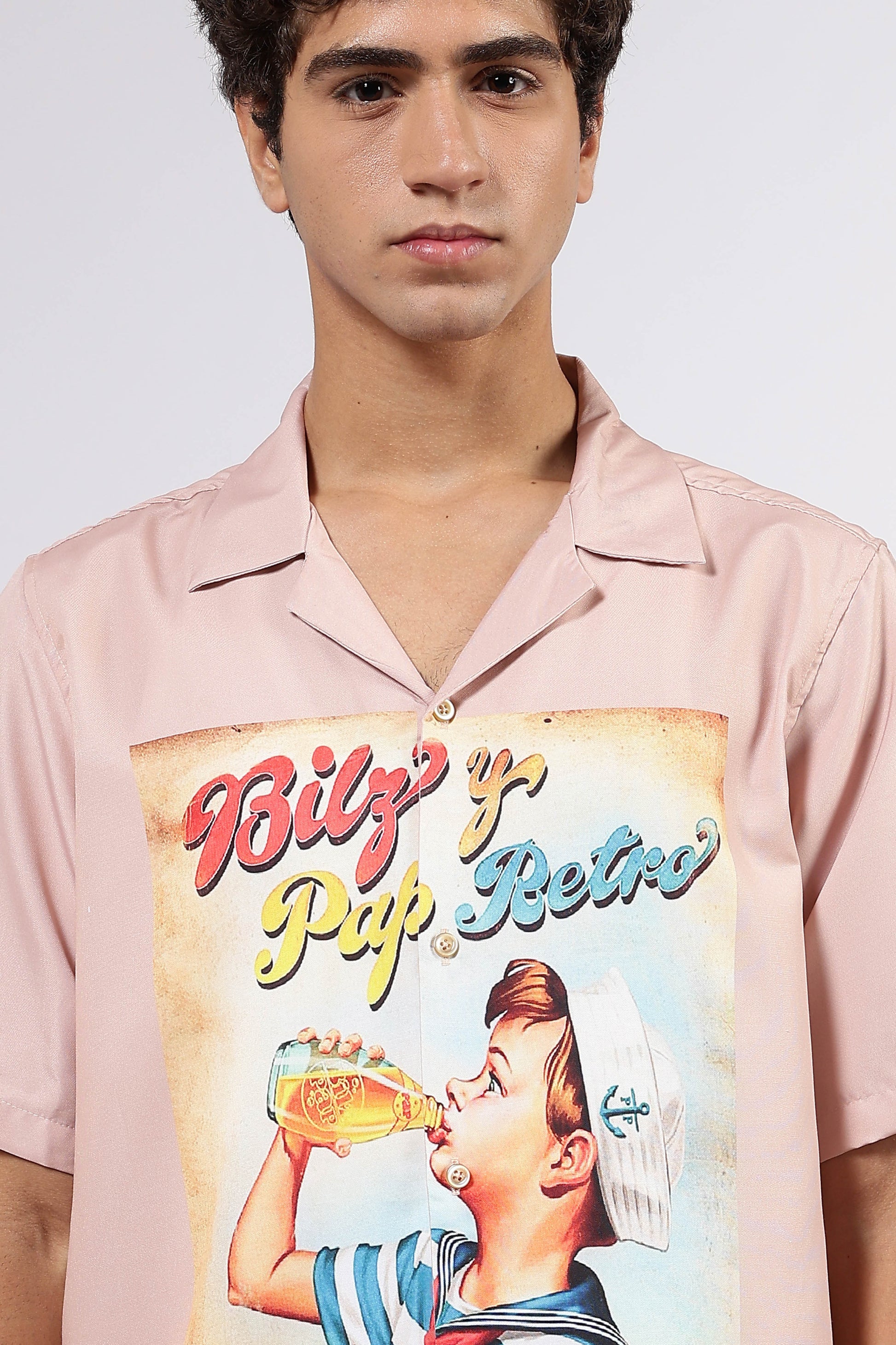- Cuban collar long sleeve button-down shirt with 2-pockets