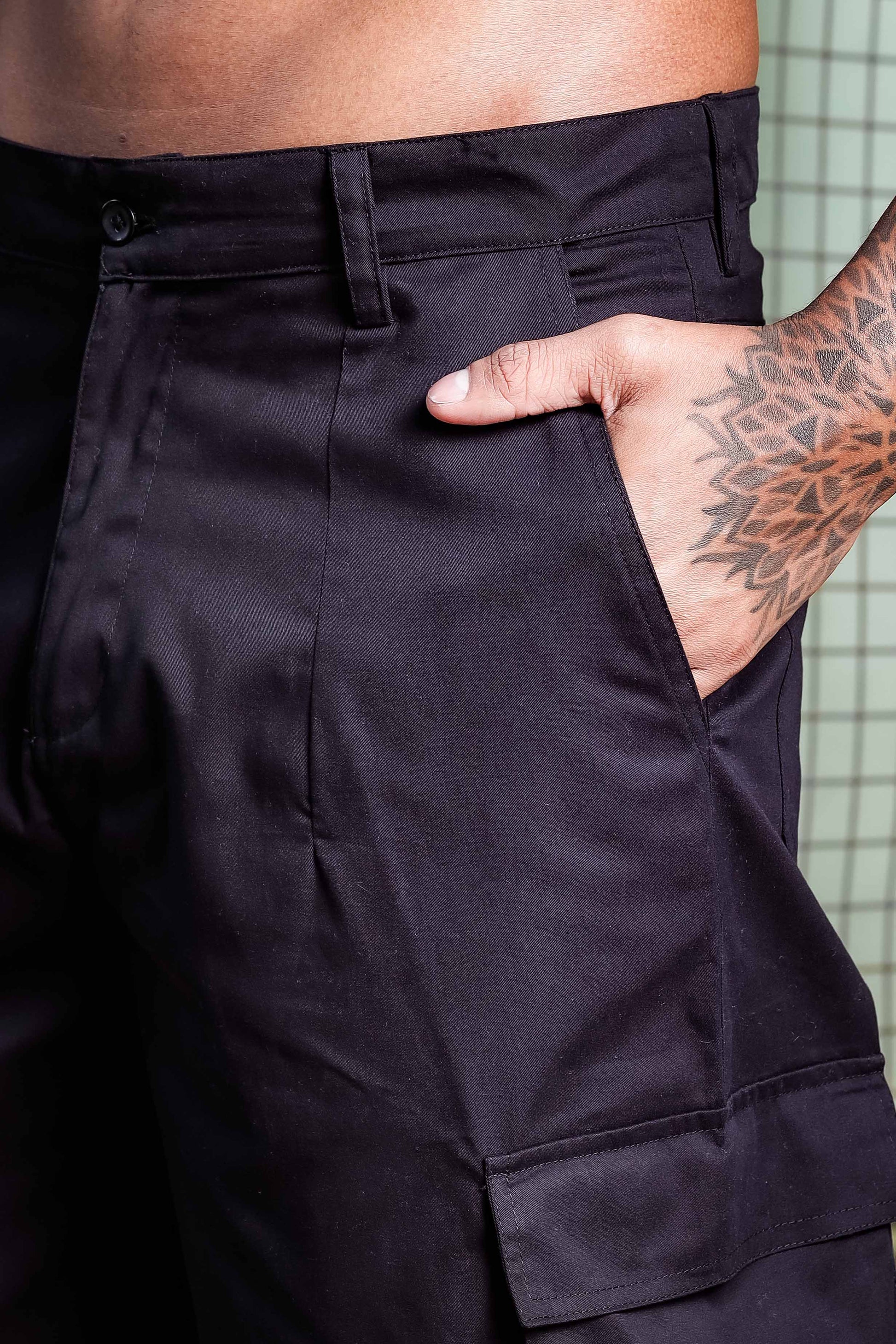 Black Baggy fit Korean Style 6 Pocket Relaxed Fit Pure Cotton Cargo Trousers