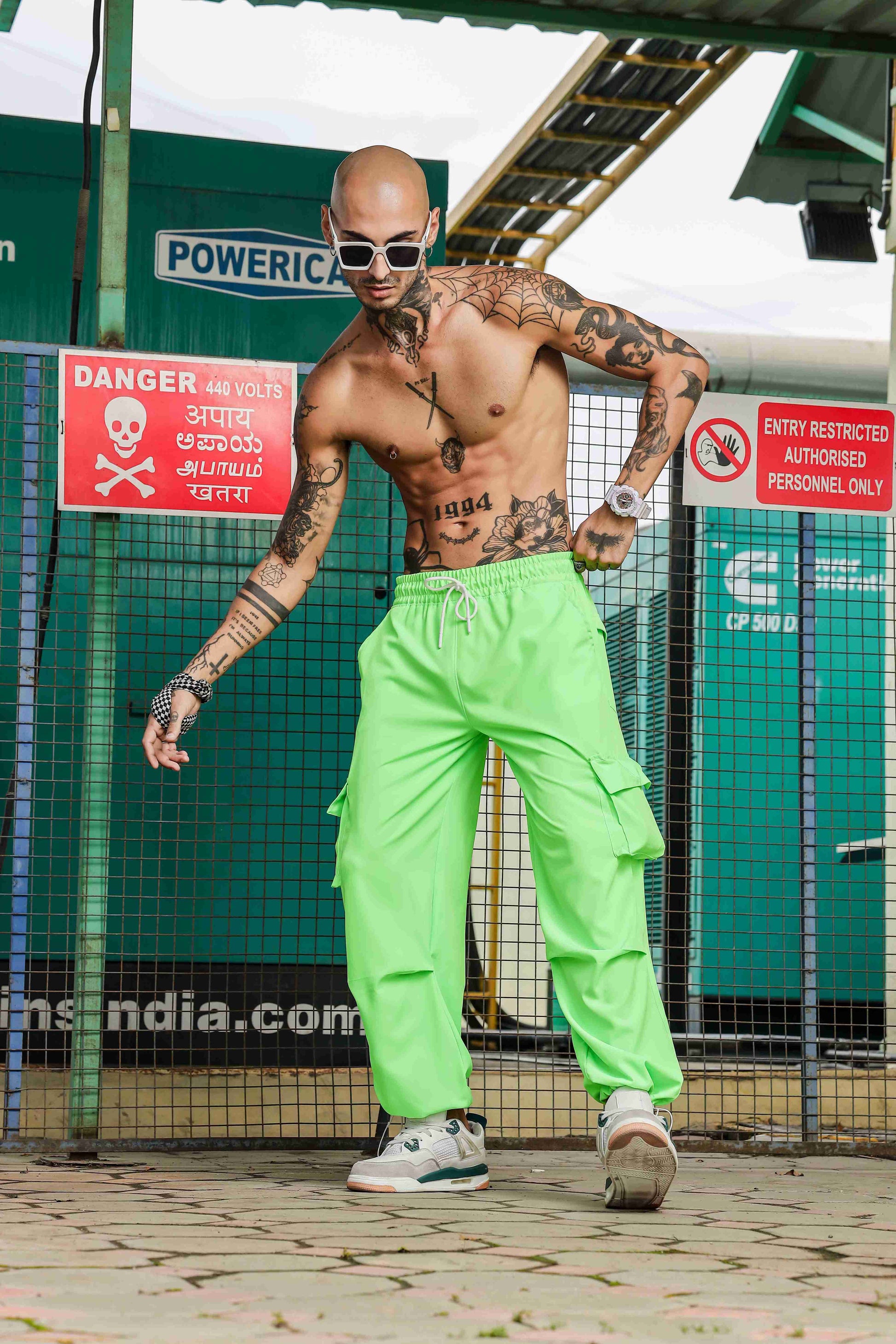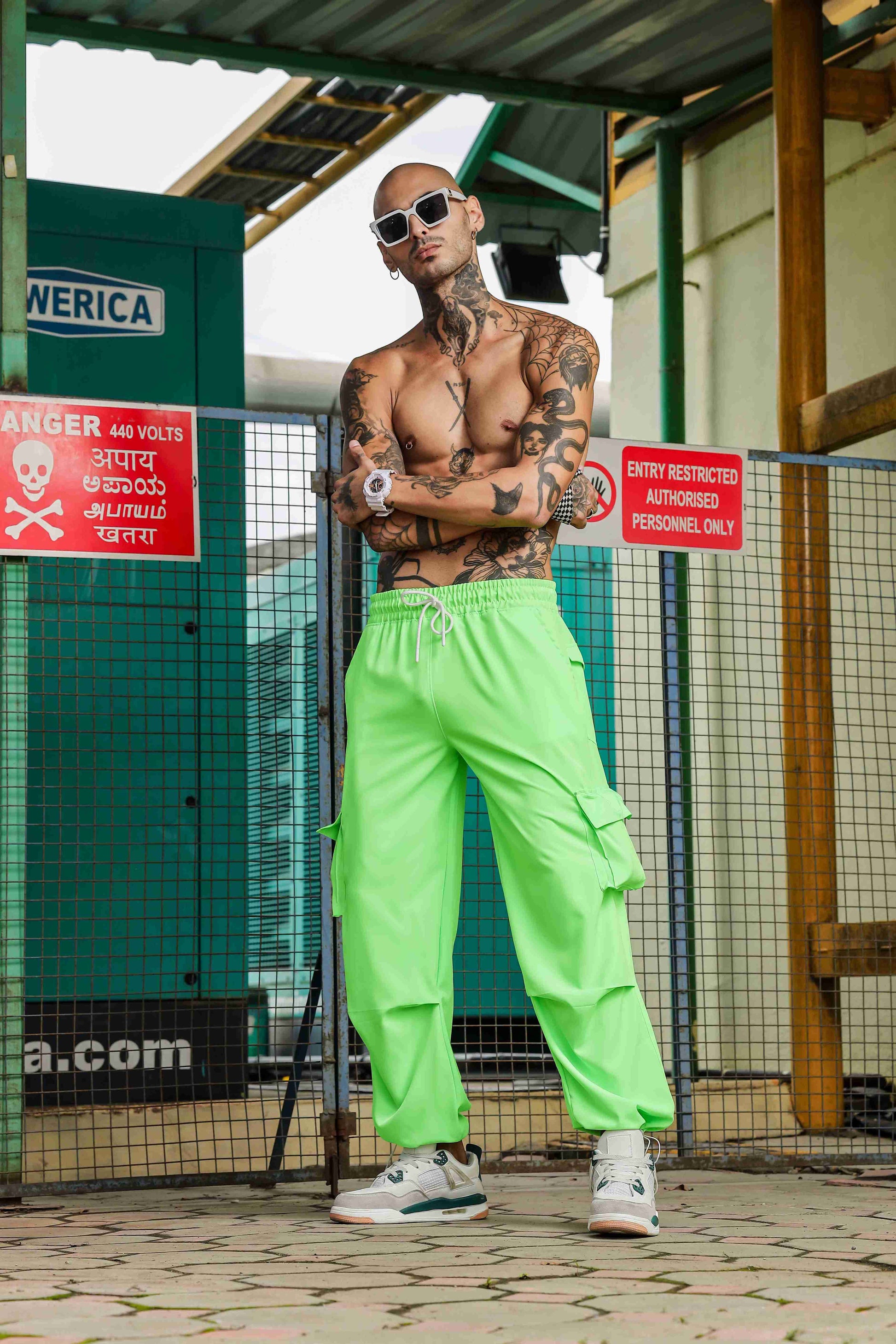 Unisex Baggy Fit Neon Green Parachute Cargo Trousers