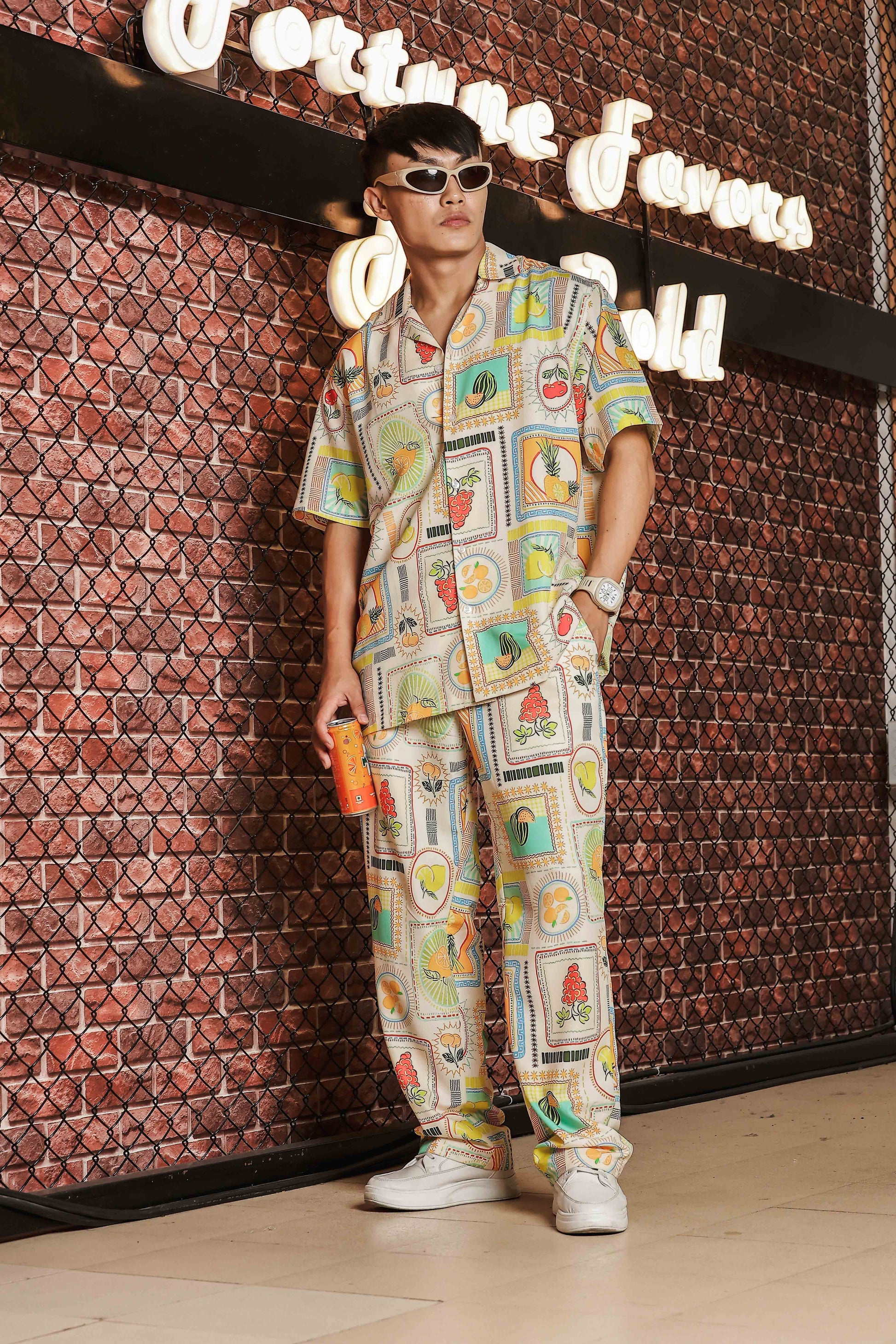 Unisex Beige Stamp Printed Mid-Rise All Day Relaxed Fit Pants