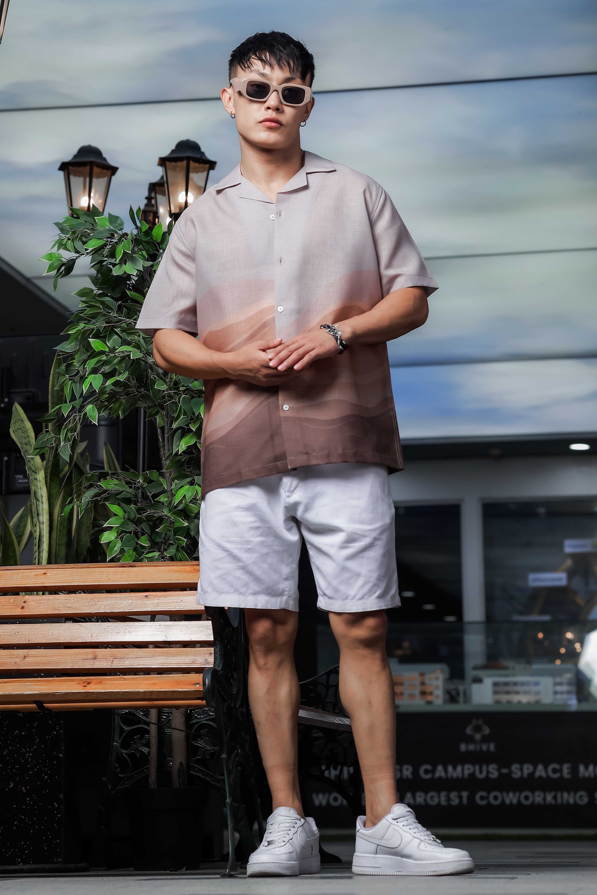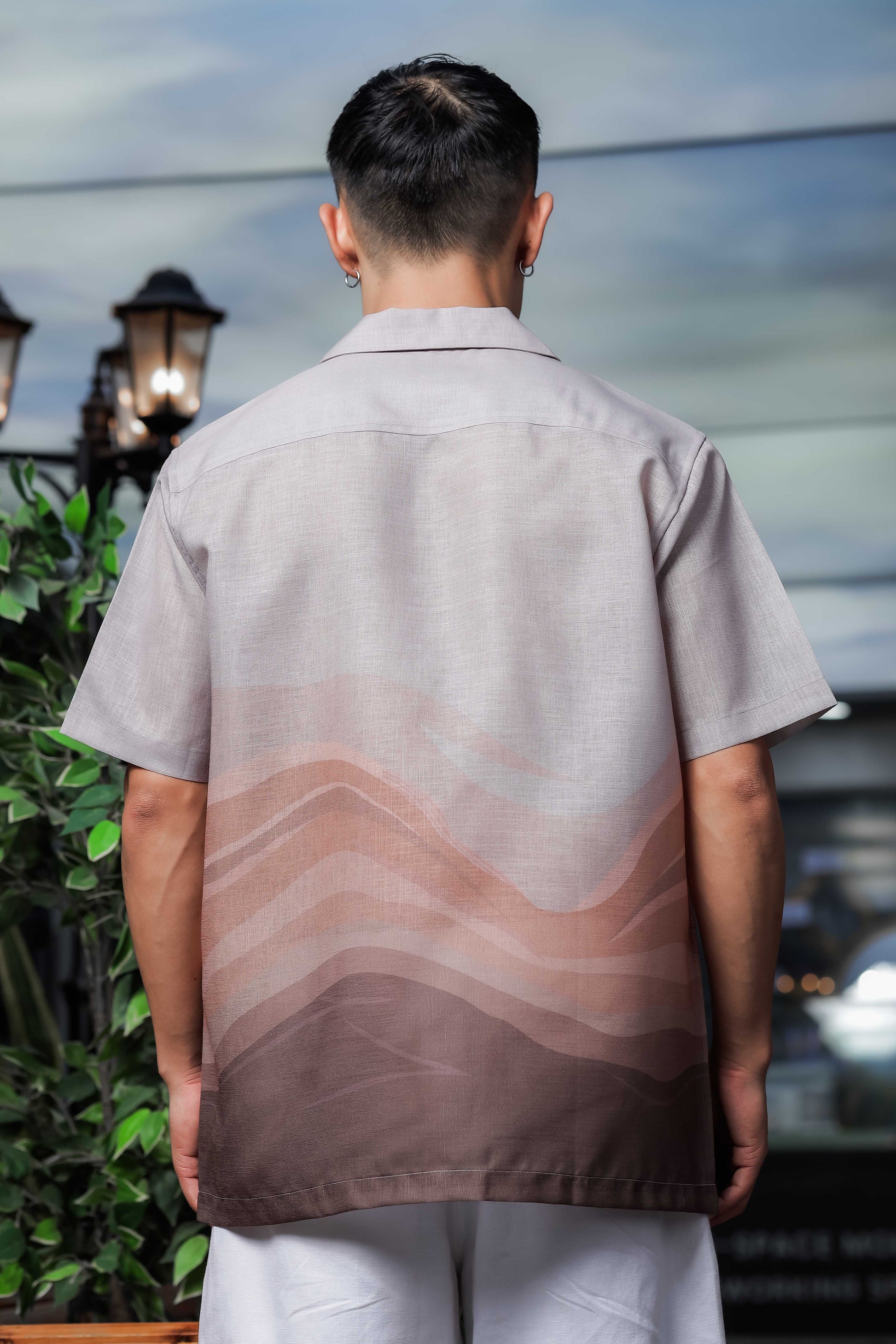 Brown Ombre Cuban Collar Relaxed Fit Resort Shirt