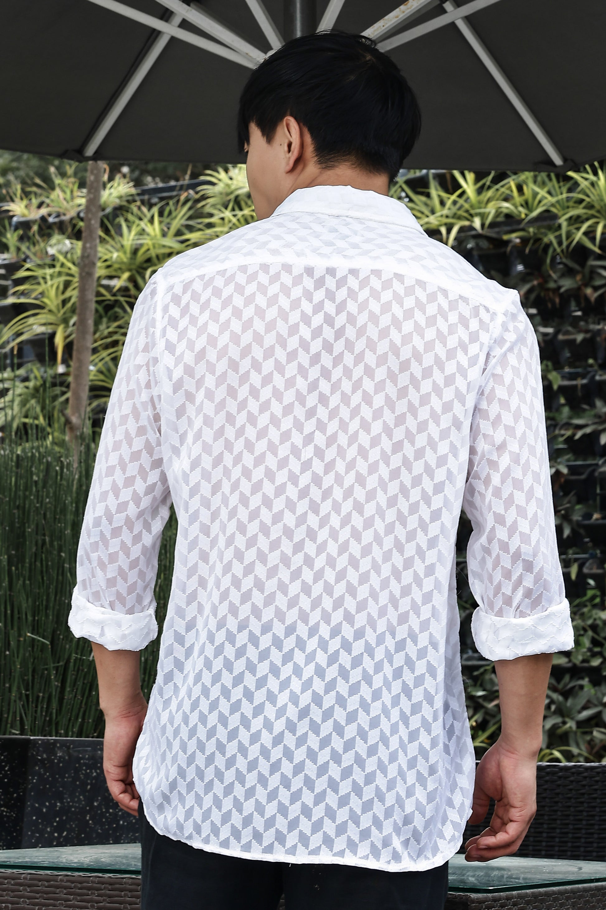 White Classic Semi Sheer Georgette Relaxed Fit Shirt 2.0