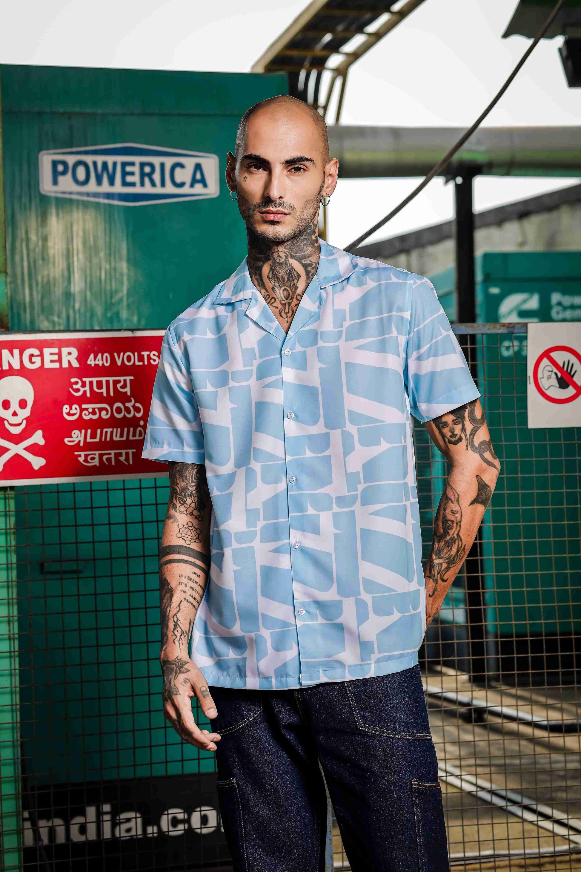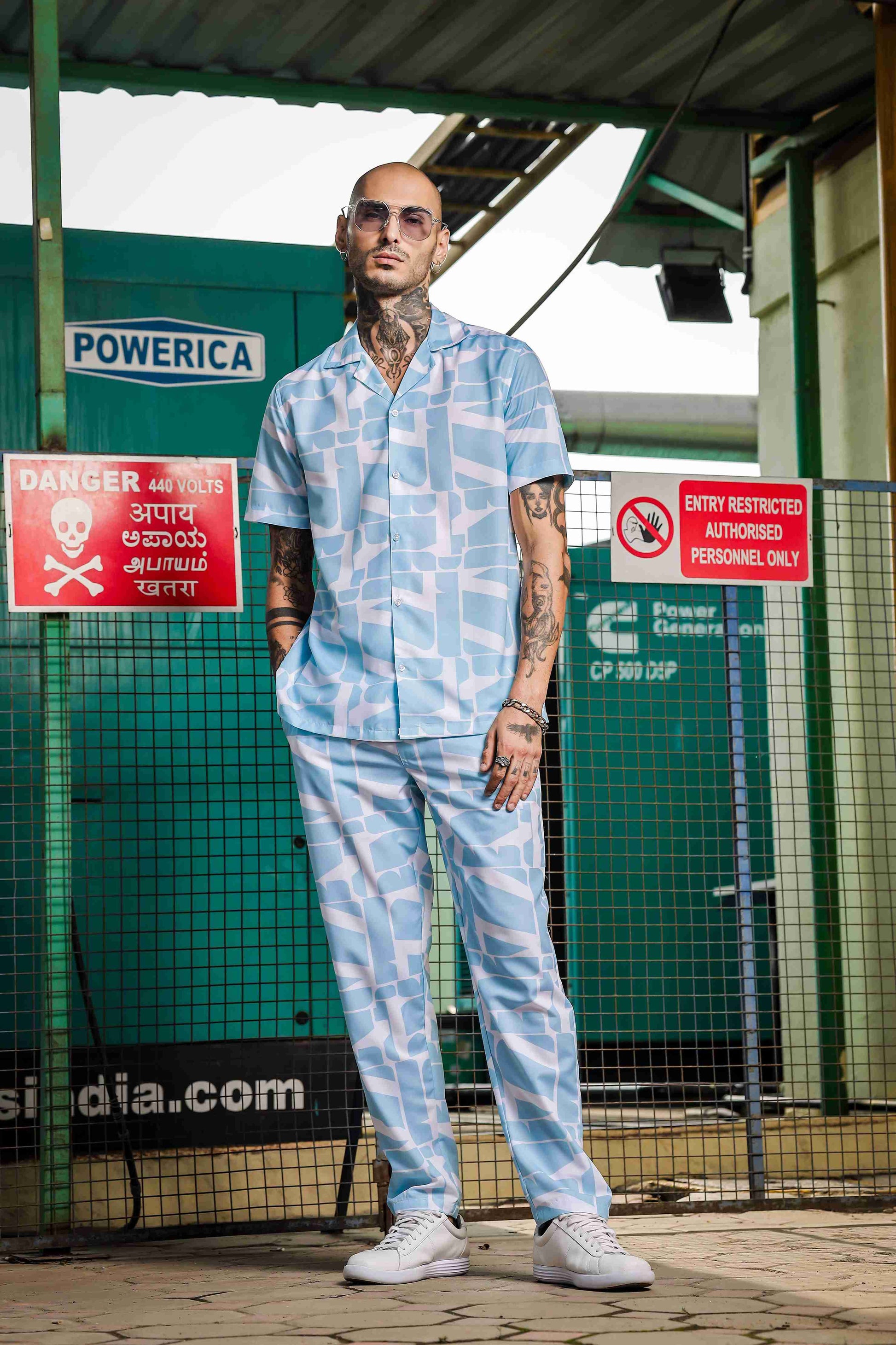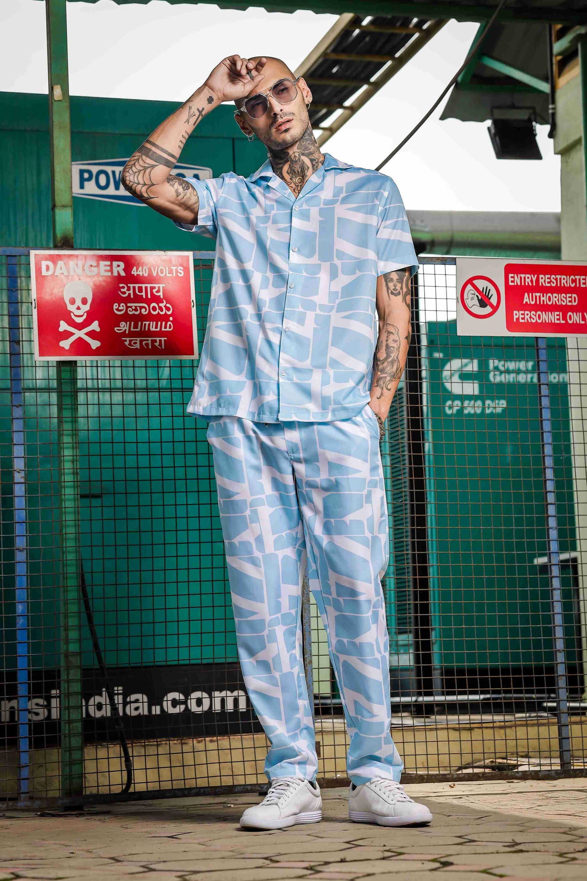 This must have coord set consists of a Relaxed half sleeve shirt with lounge pants.Relaxed-fit shirt in a patterned rayon viscose weave with a resort collar, French front, short sleeves and a straight-cut hem.White Blue printed mid-rise lounge pants, has an inner elasticated waistband with drawstring closure and two slant pockets on side and one pocket at the back