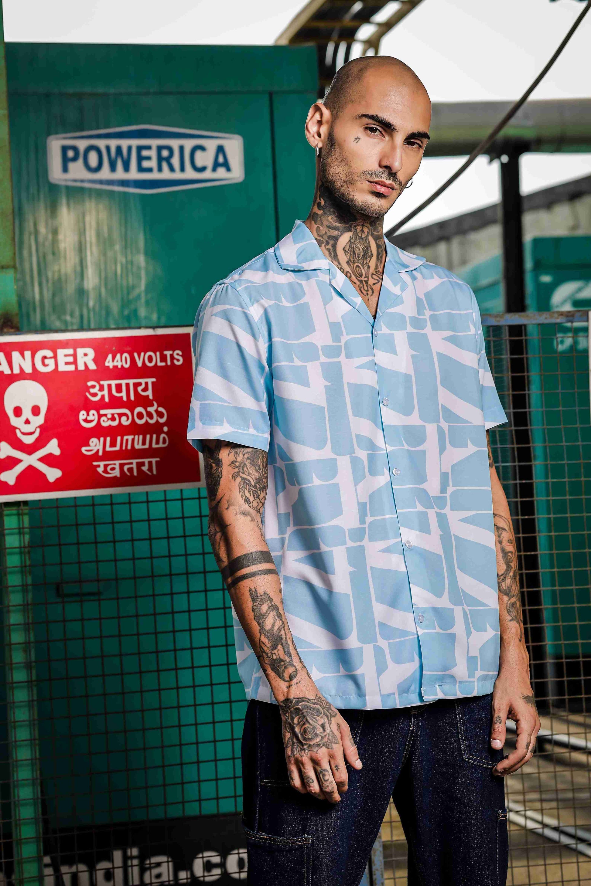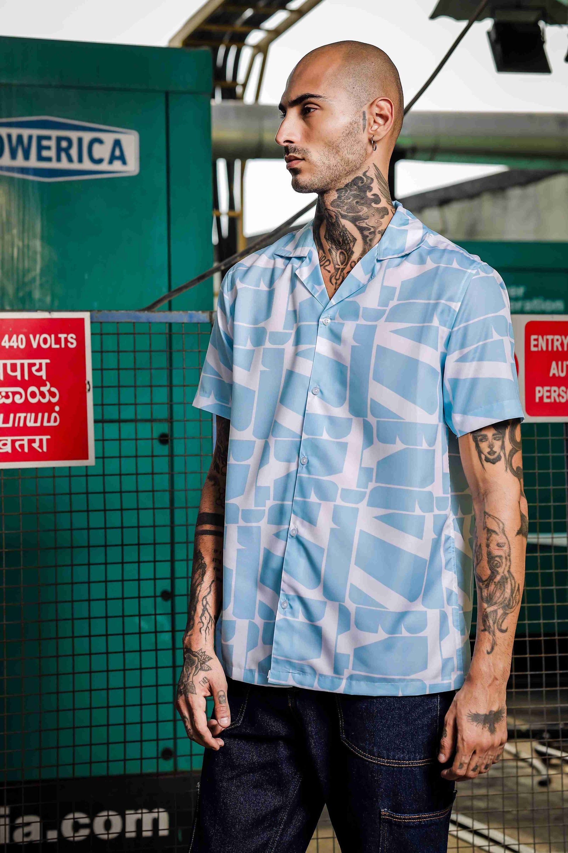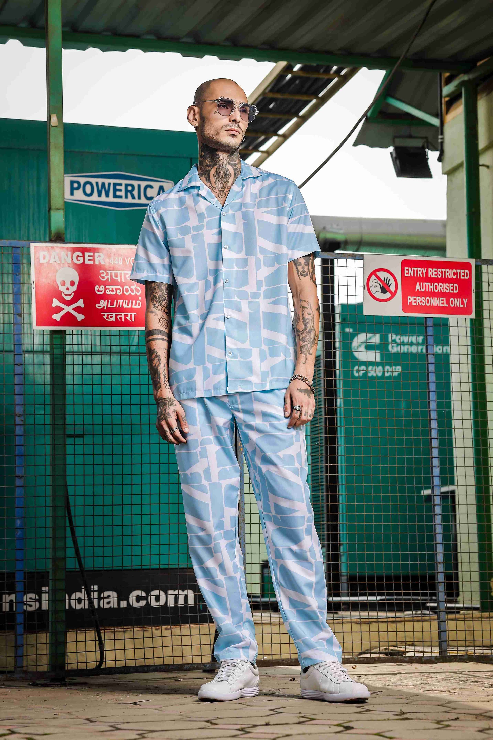 This must have coord set consists of a Relaxed half sleeve shirt with lounge pants.Relaxed-fit shirt in a patterned rayon viscose weave with a resort collar, French front, short sleeves and a straight-cut hem.White Blue printed mid-rise lounge pants, has an inner elasticated waistband with drawstring closure and two slant pockets on side and one pocket at the back